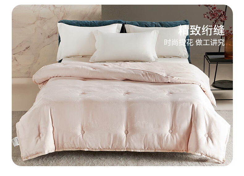 透气且恒温保暖;提花面料精致显高级;防钻绒工艺确保被芯持久如新。