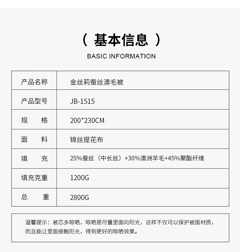 金丝莉 蚕丝澳毛被1200GJB-1515