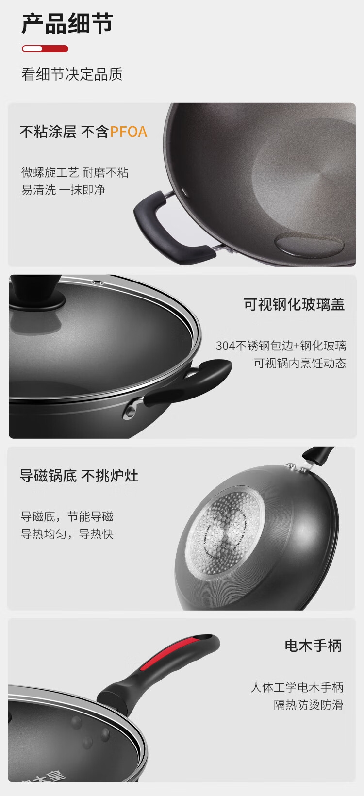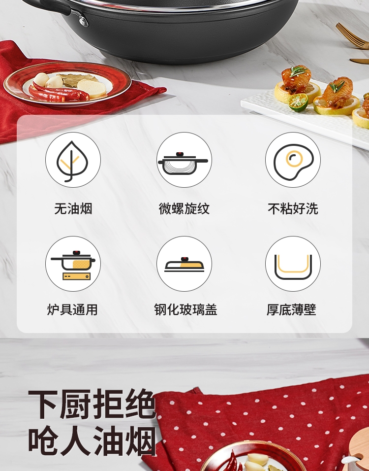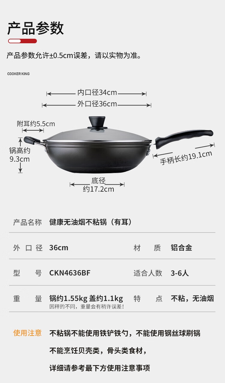 炊大皇 炒锅不粘锅油烟平底多用煎炒锅CKN4636BF