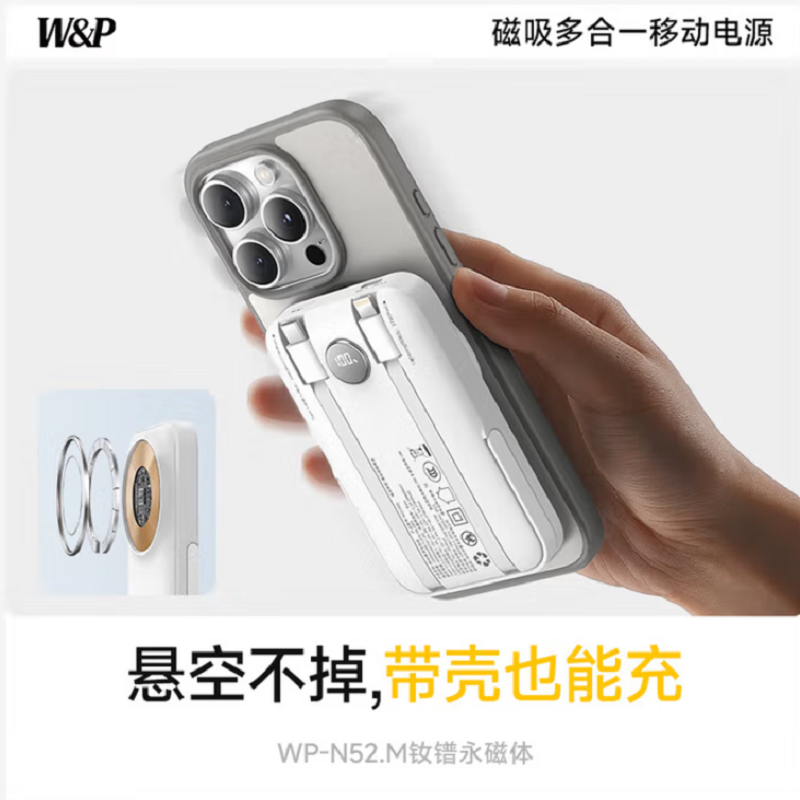 创新外观专利设计,磁吸三合一+双线快充;隐藏式铝合金支架,浑然一体;国家3C认证,放心上机