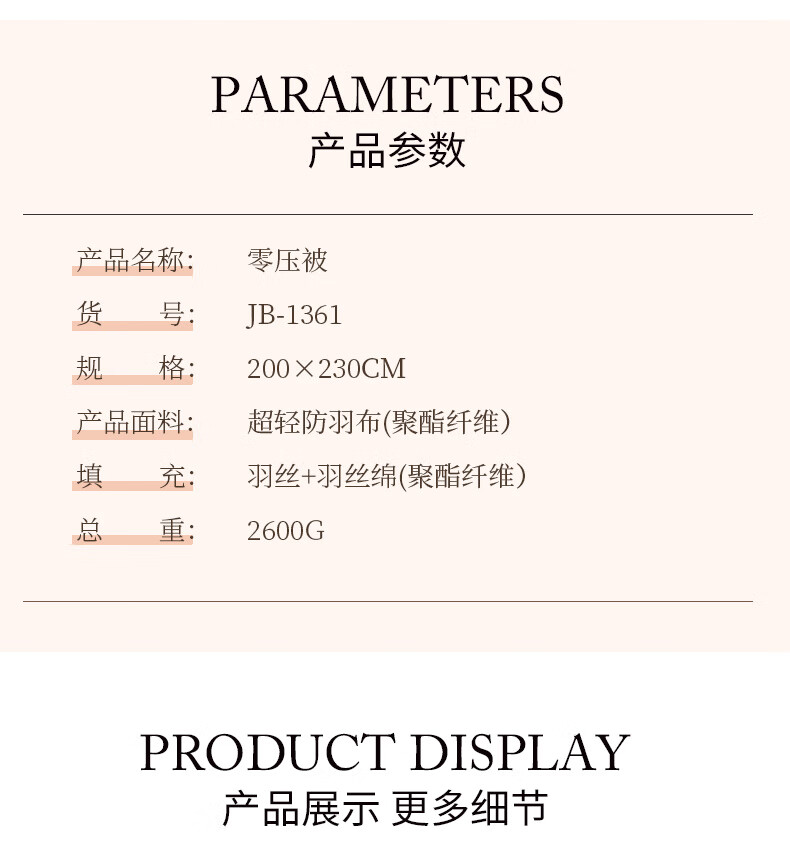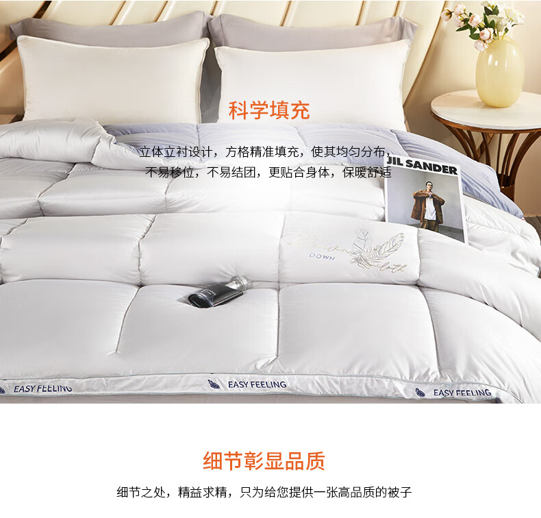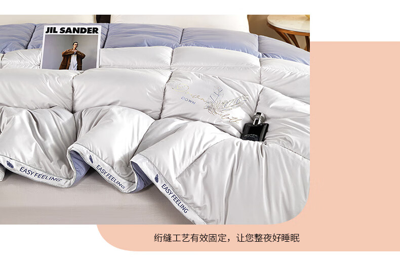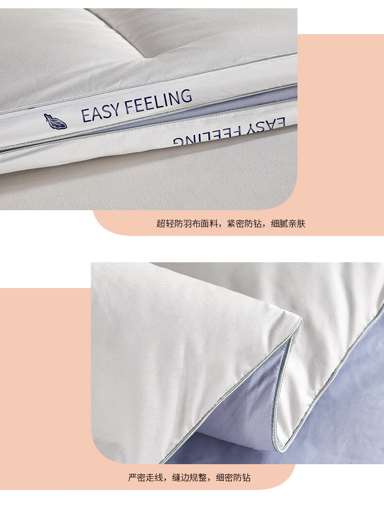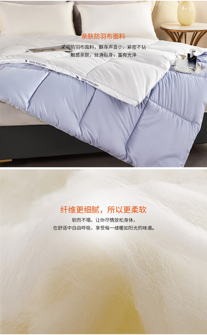 羽丝+羽丝绵黄金配比,蓬松柔软不失支撑力;立体立衬工艺,锁温更持久,轻盈无压迫感;高密度防羽面料,细节针脚锁住温暖!