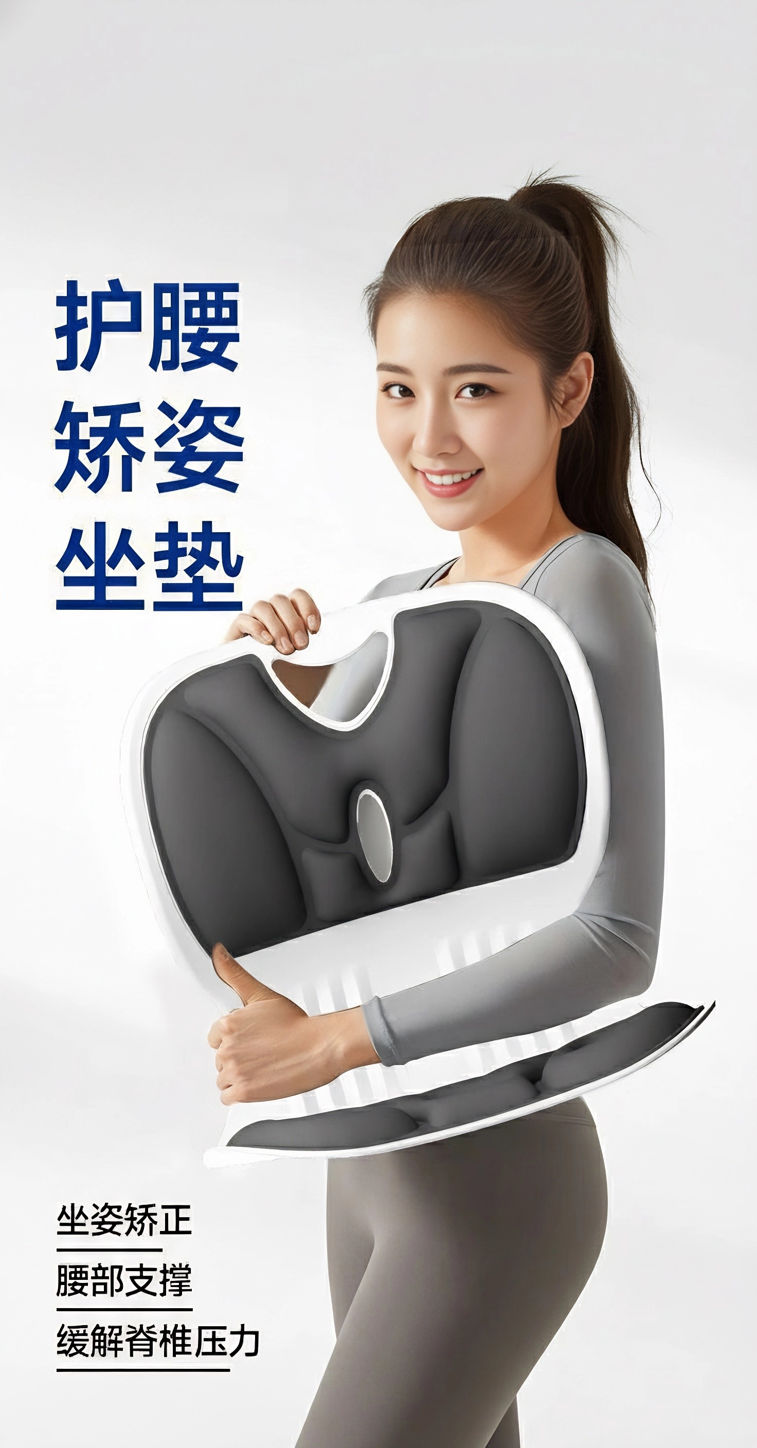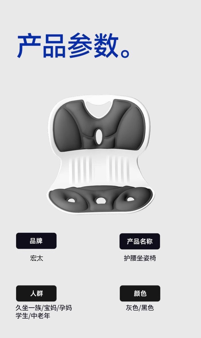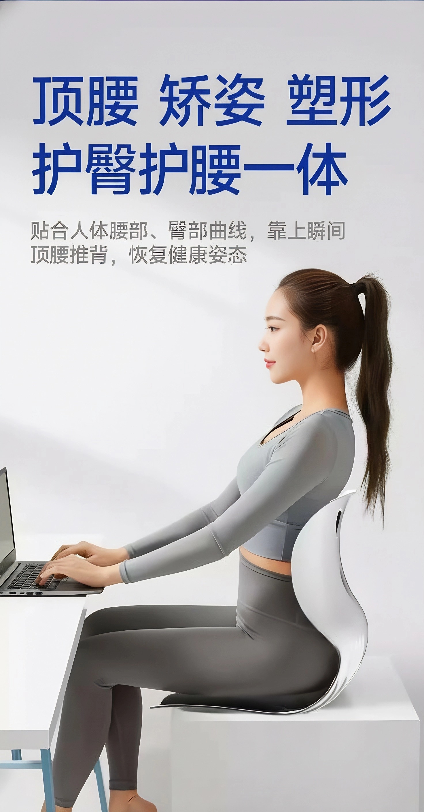 护腰减压:采用人体工学设计,贴合腰椎曲线,通过S型;矫正坐姿;多功能设计,兼顾坐垫和腰靠,一物多用,满足不同场景