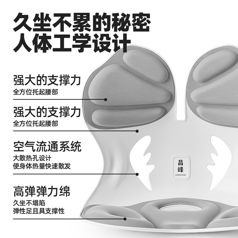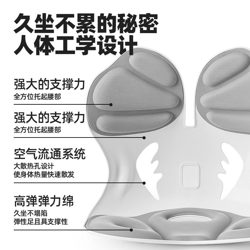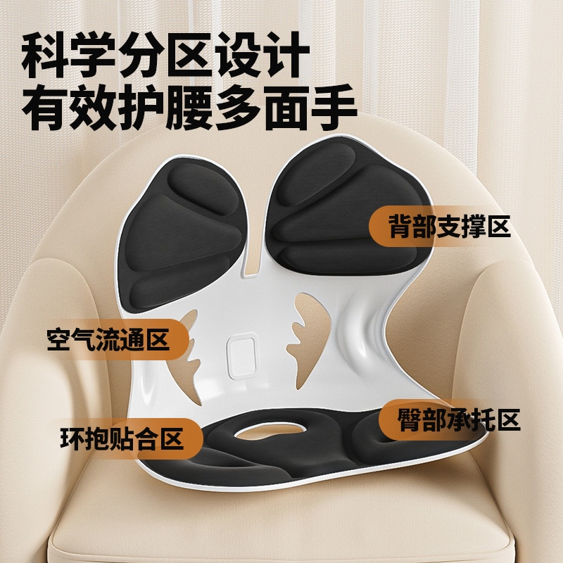 护腰减压:采用人体工学设计,贴合腰椎曲线,通过S型;正坐姿;多功能设计,兼顾坐垫和腰靠,一物多用,满足不同场景