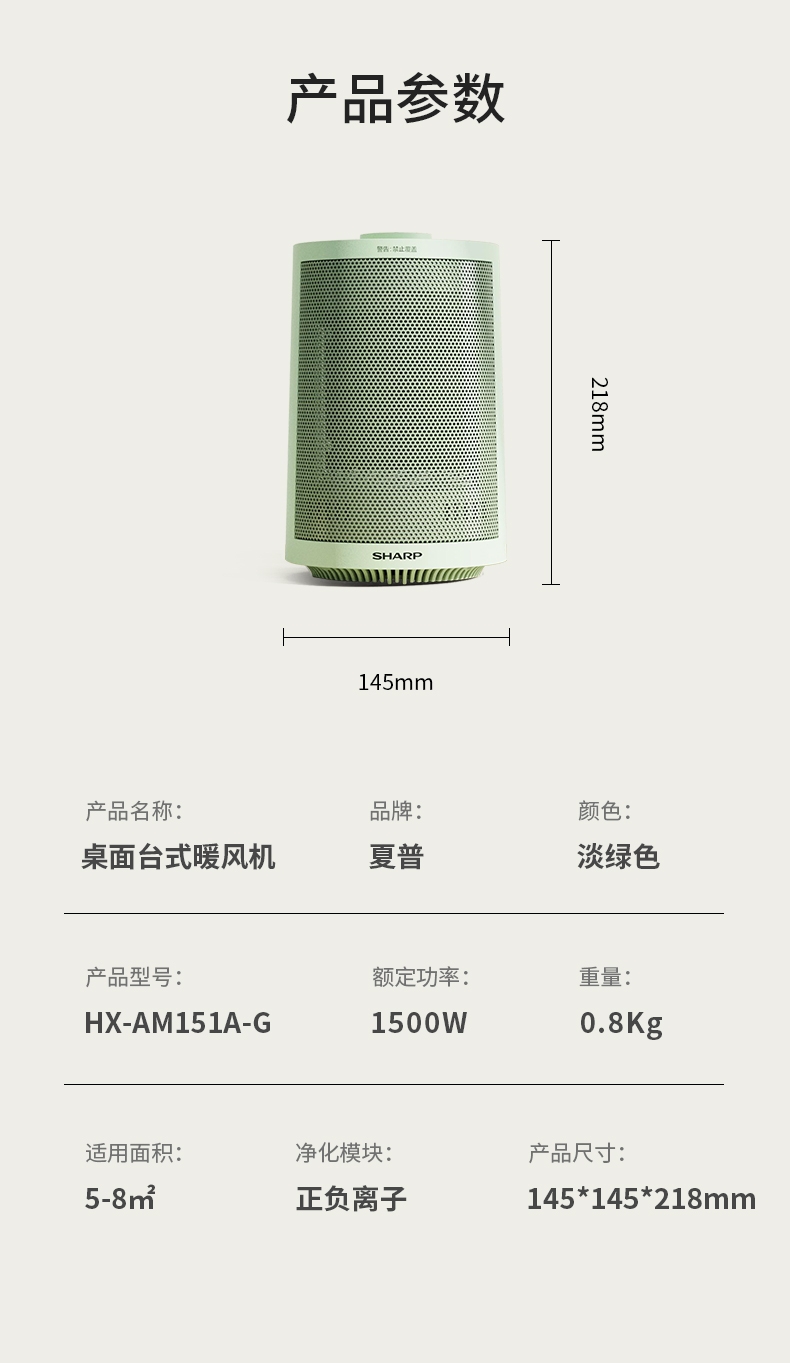夏普 桌面暖风机机械款绿色离子群HX-AM151A-G