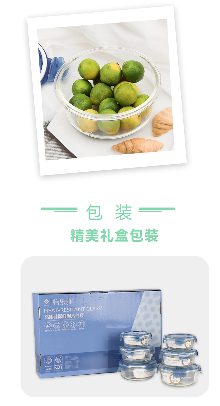 怡乐雅 高硼硅保鲜碗六件套YLYT689