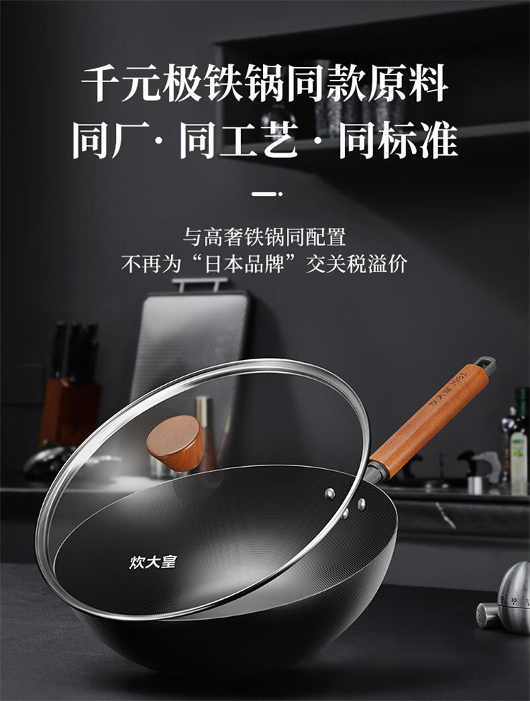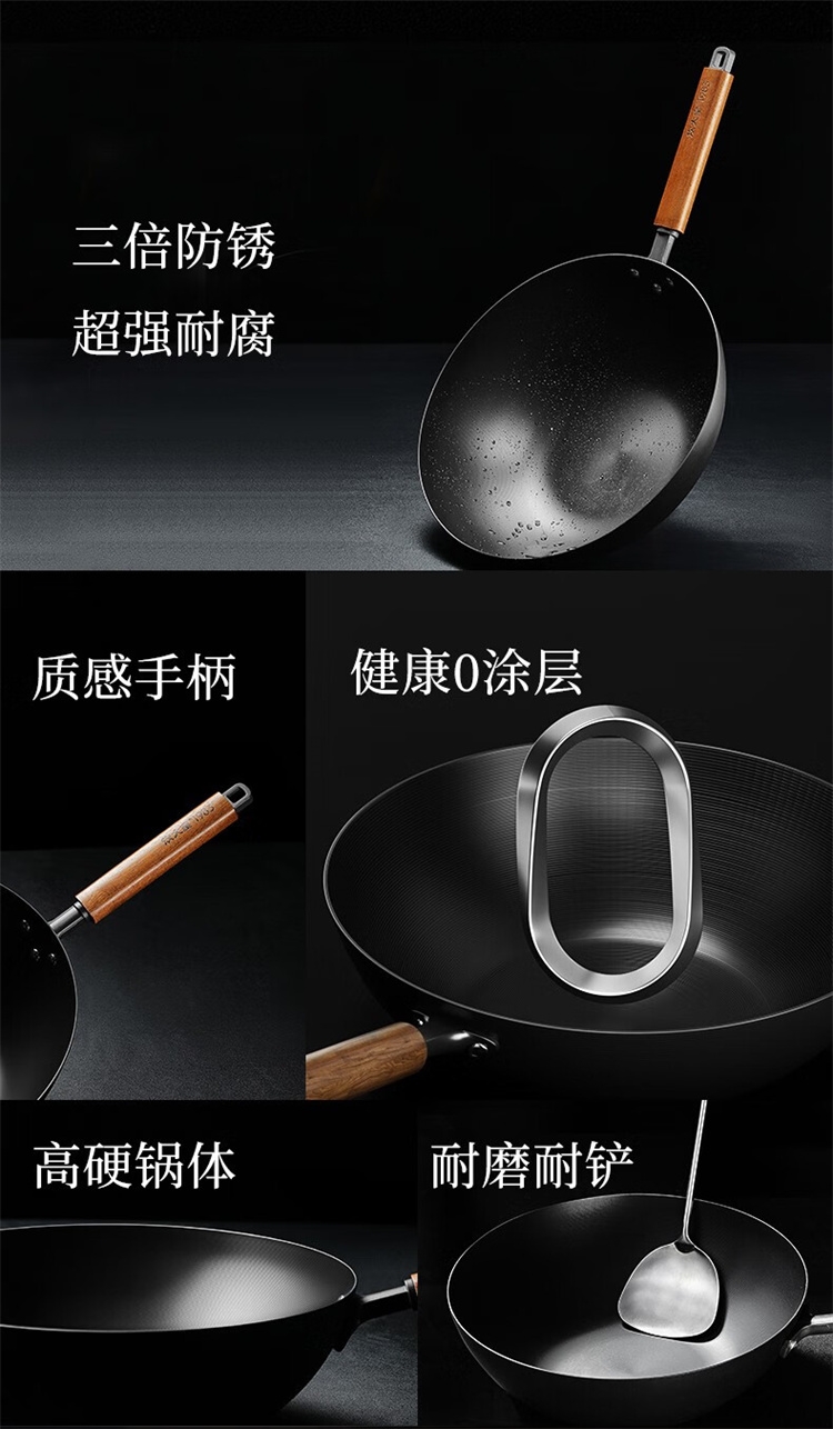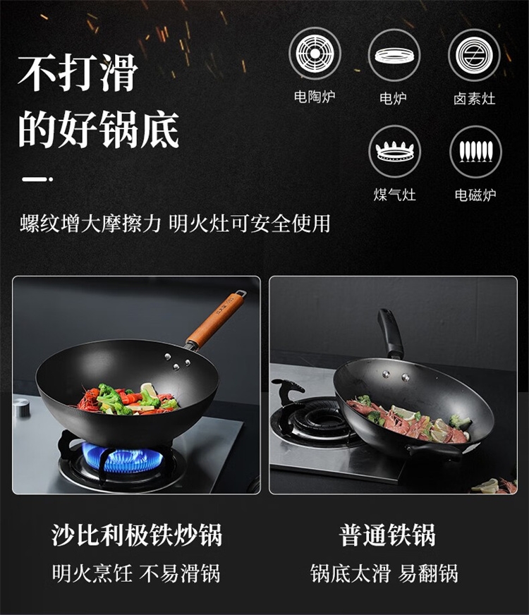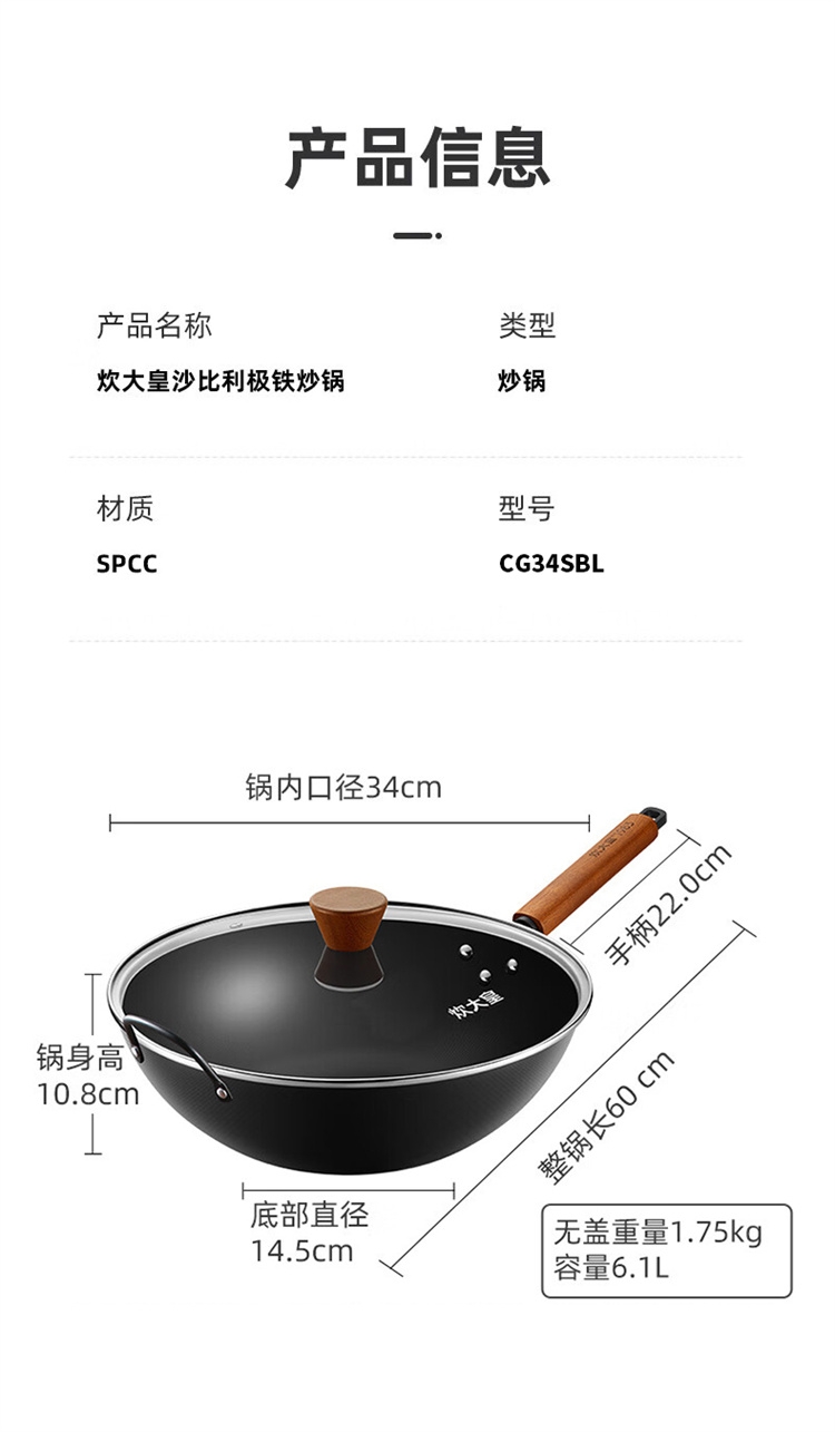 炊大皇 家用无涂层不锈炒锅燃气灶专用CG34SBL