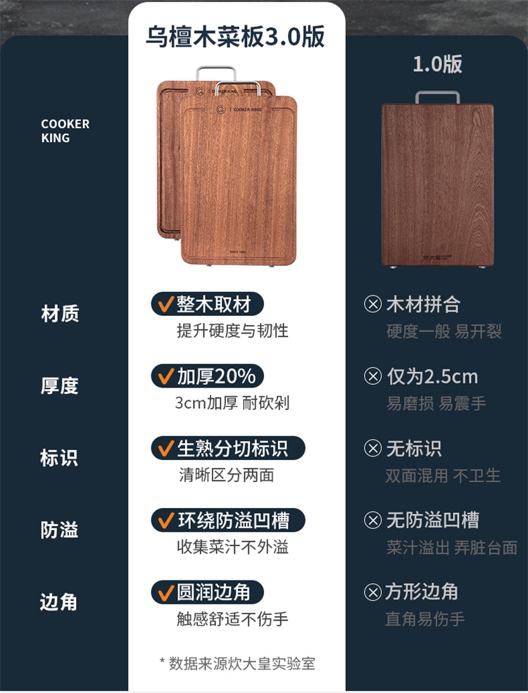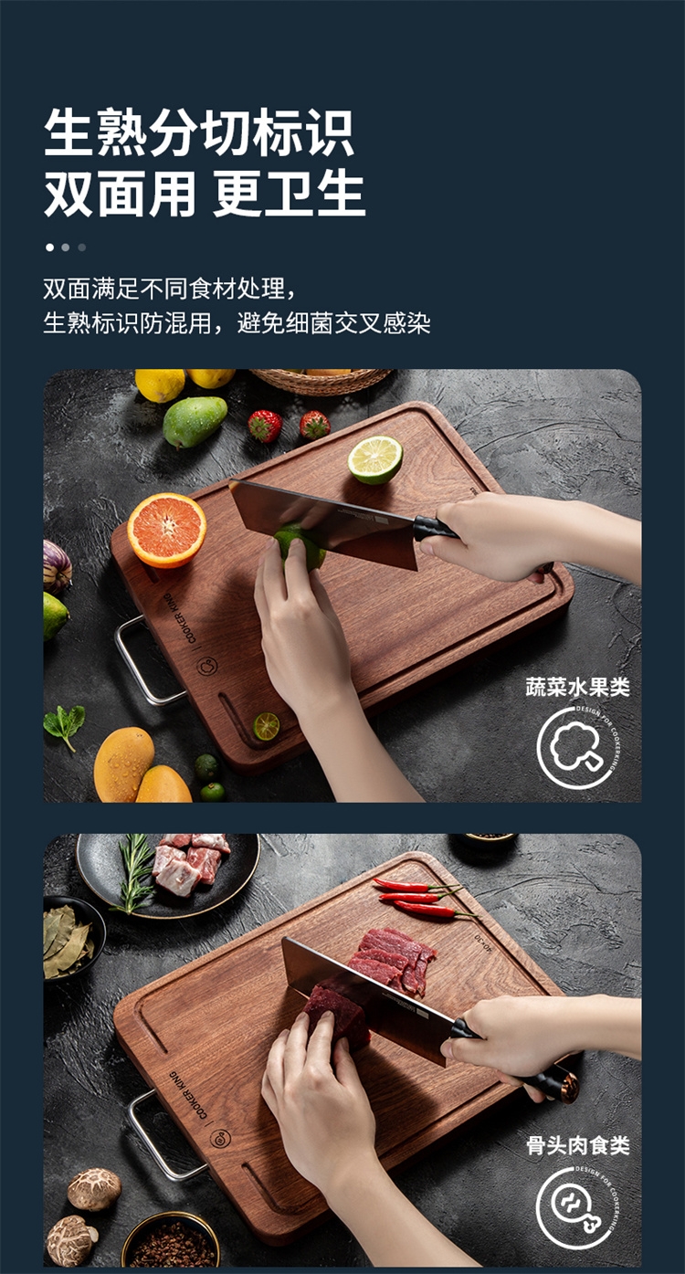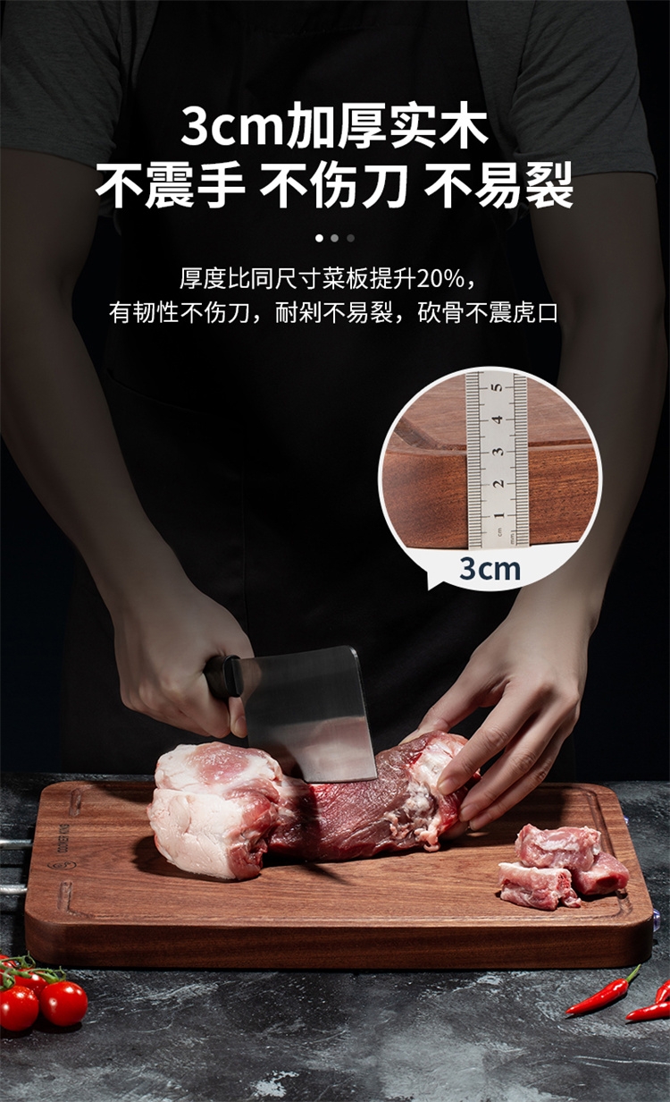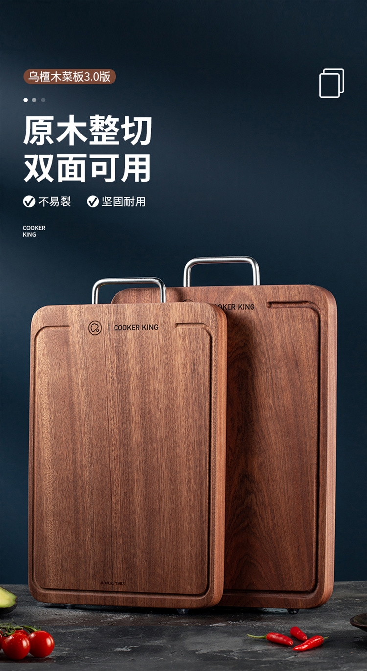 炊大皇 加厚实木乌檀木砧板可悬挂菜板YC38CB