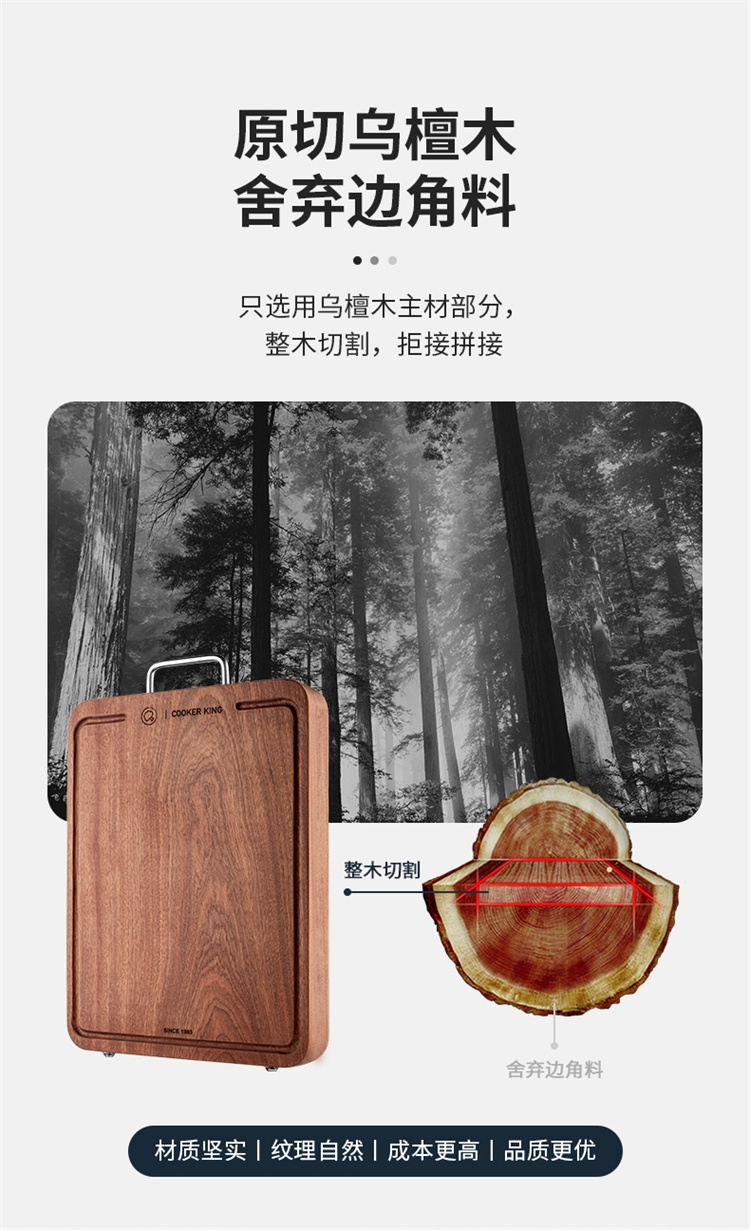 炊大皇 加厚实木乌檀木砧板可悬挂切菜板YC40CB