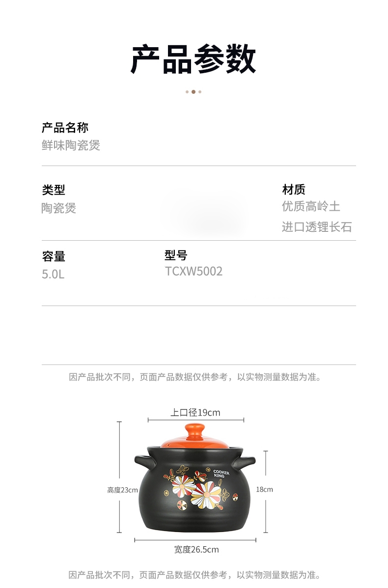 炊大皇 5L家用燃气煤气灶专用煲汤锅陶瓷煲TCXW5002-