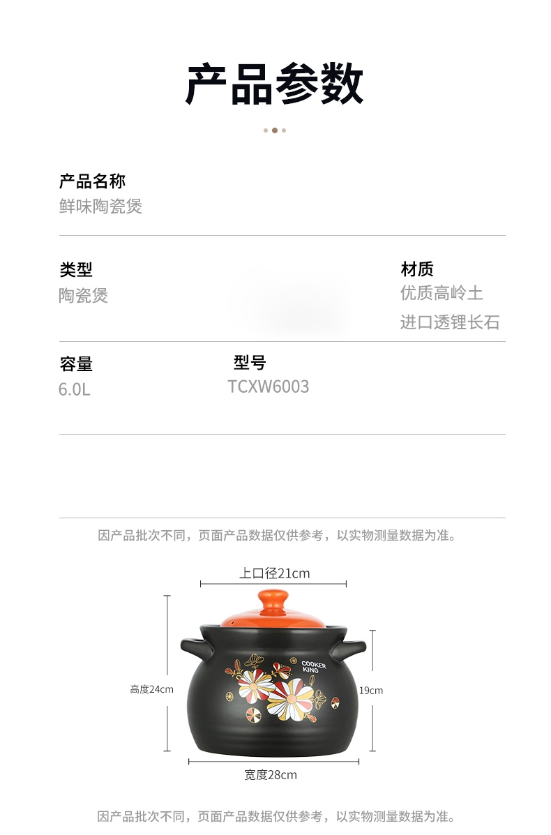 炊大皇 6L砂锅陶瓷煲汤家用燃气煤气灶专用TCXW6003