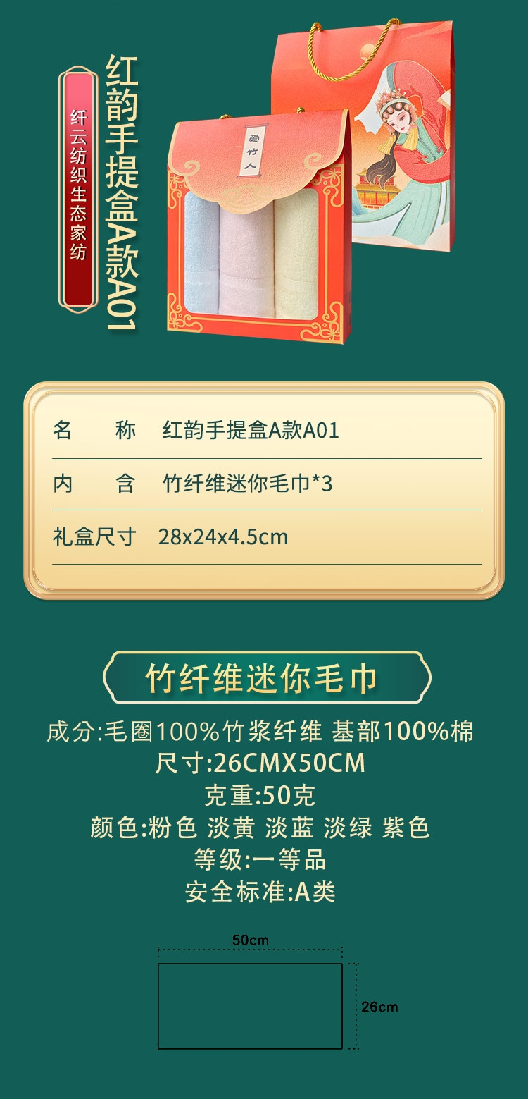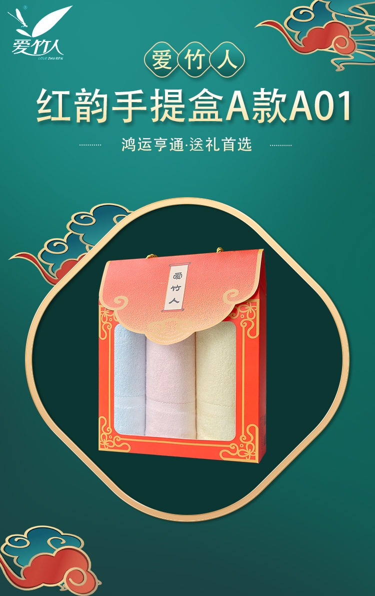 爱竹人 竹纤维迷你毛巾红韵礼盒3条装A01