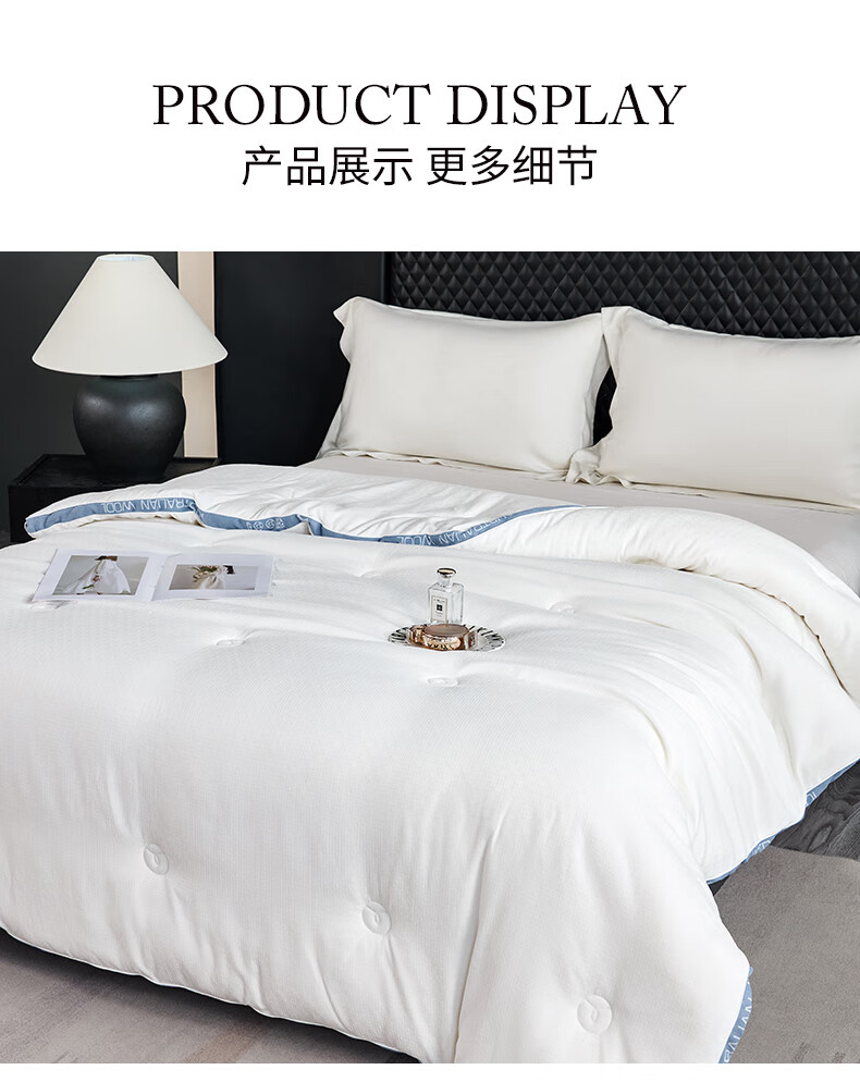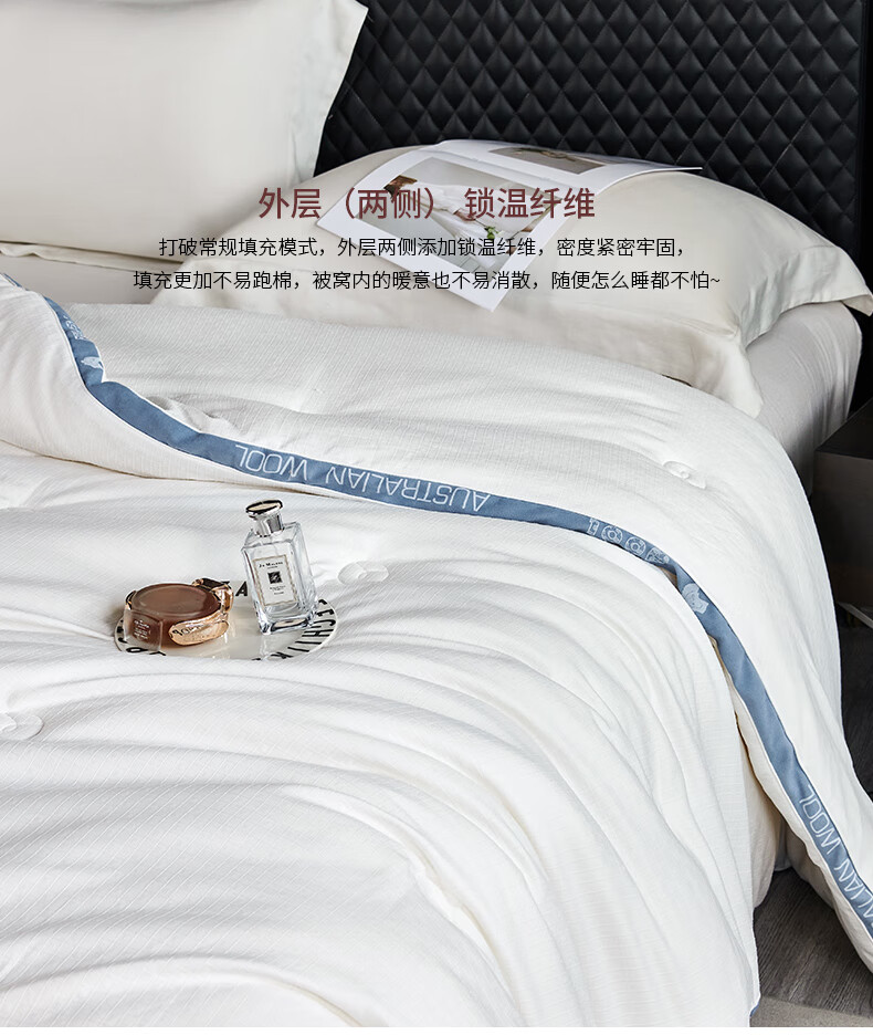 填充:中间层 100%澳洲羊毛 外层(两侧) 锁温纤维(100%聚酯纤维)
