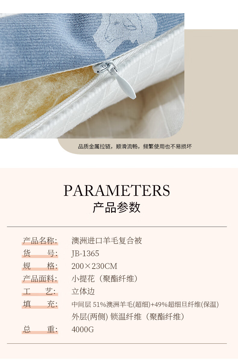 金丝莉 澳洲进口羊毛被4000GJB-1365