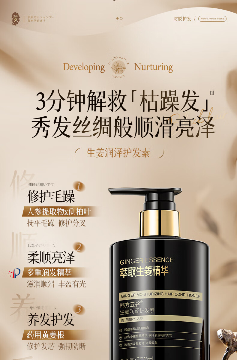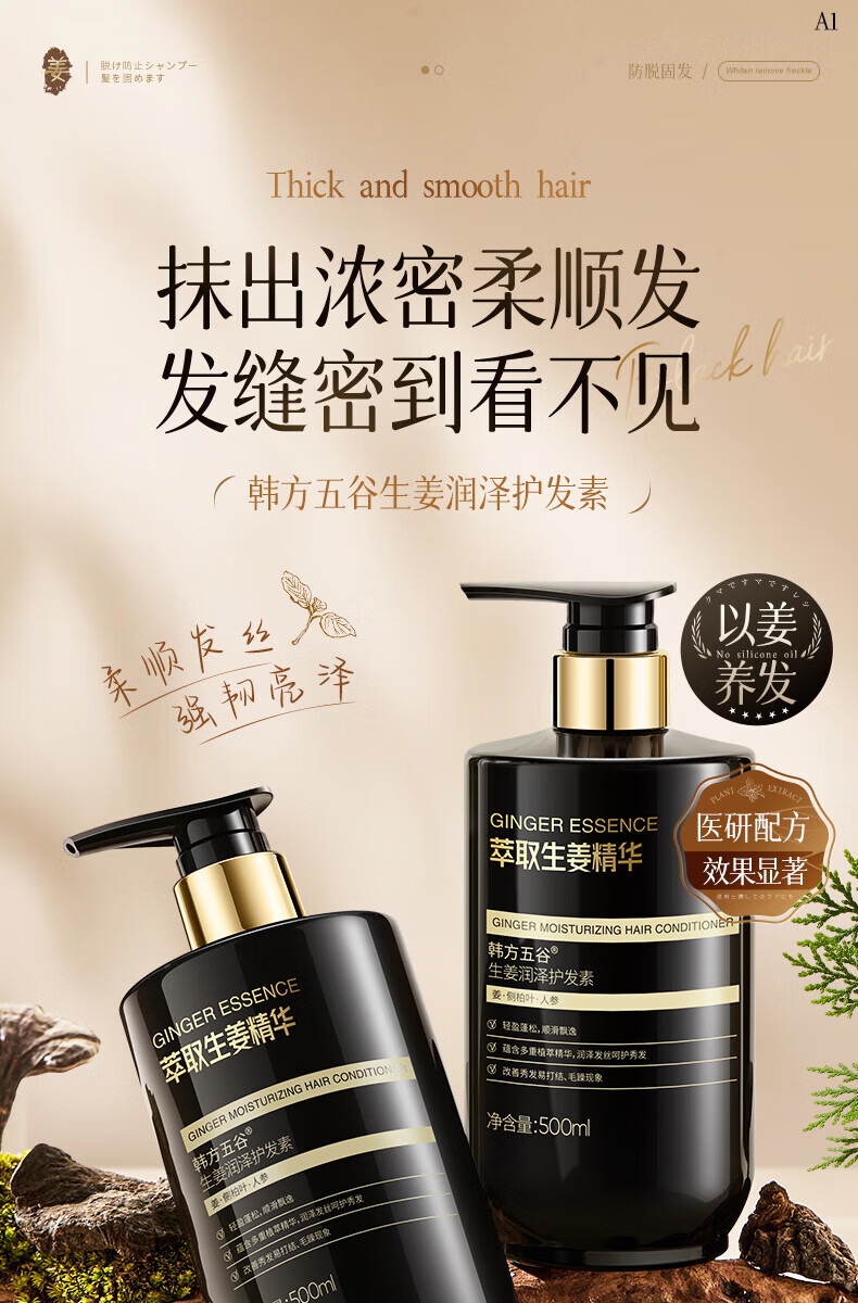 配置清单: 生姜润泽护发素500ml(黑金瓶)
