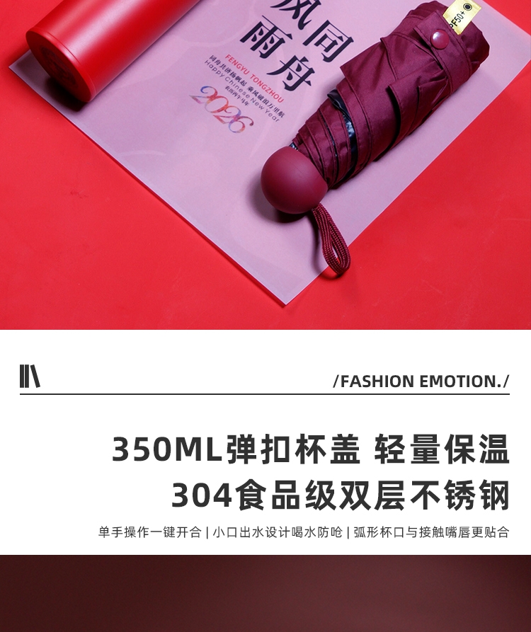 配置清单:名仕保温杯350ML*1 胶囊雨伞*1 精装礼盒*1 手提袋*1