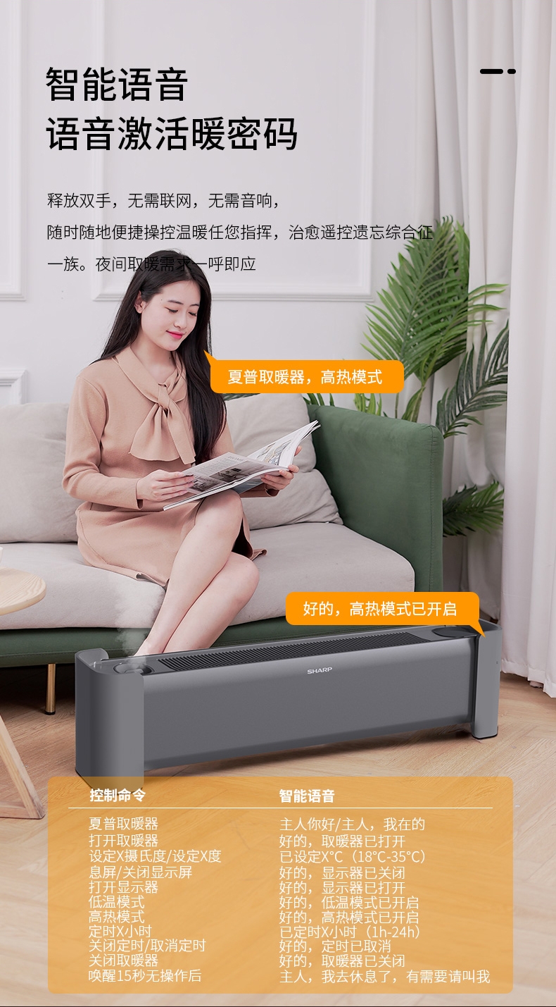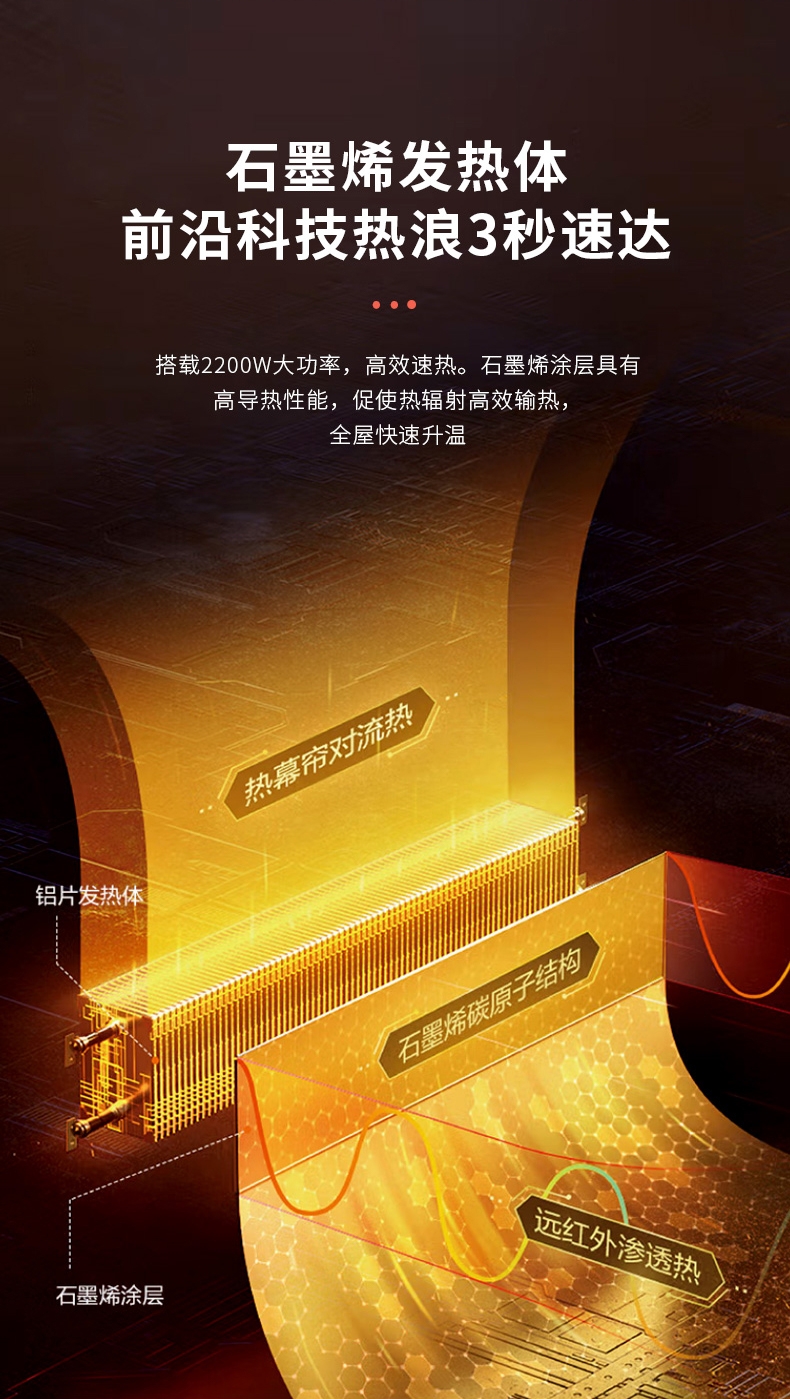 特有独立预约模块:可以直接声控操作取暖器 ;石墨烯发热:取暖效率提升30%;触控操作,操控更便捷