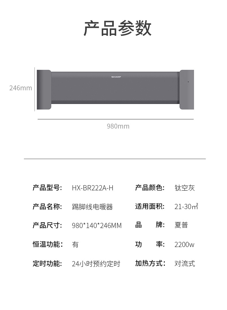 夏普 踢脚线取暖器触控操作HX-BR222A-H