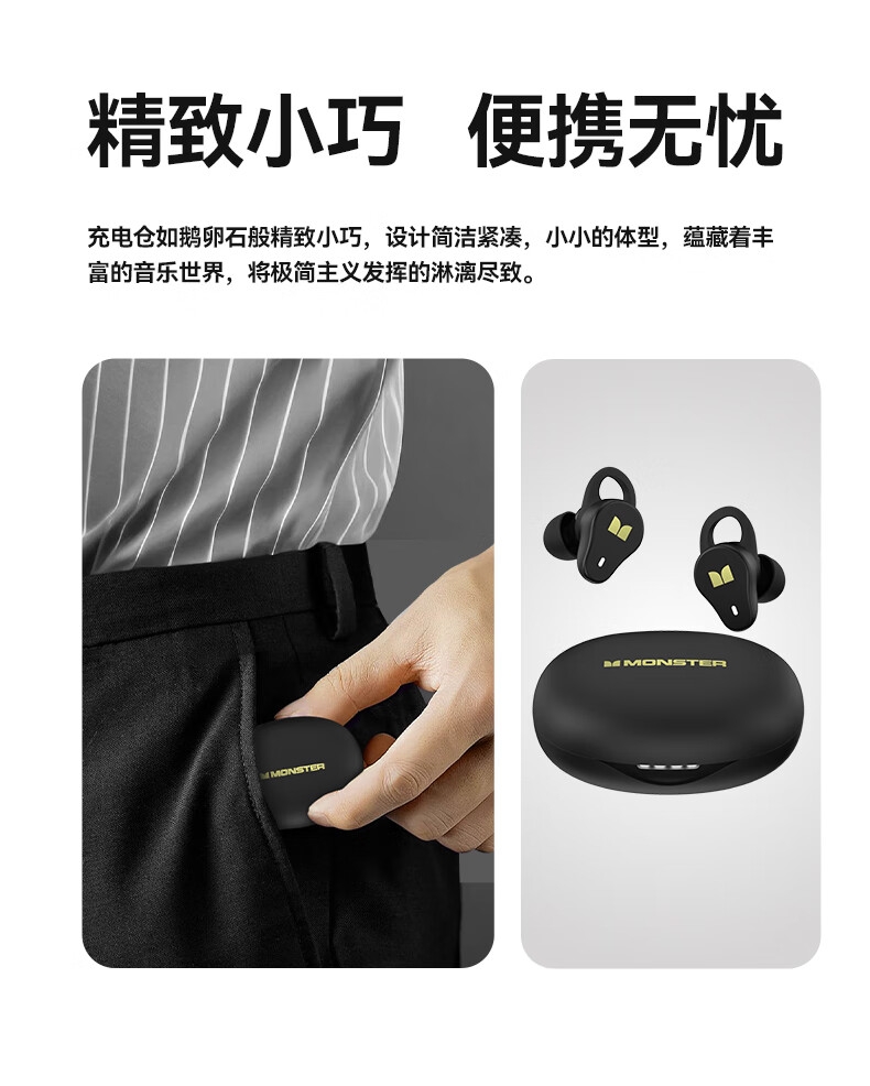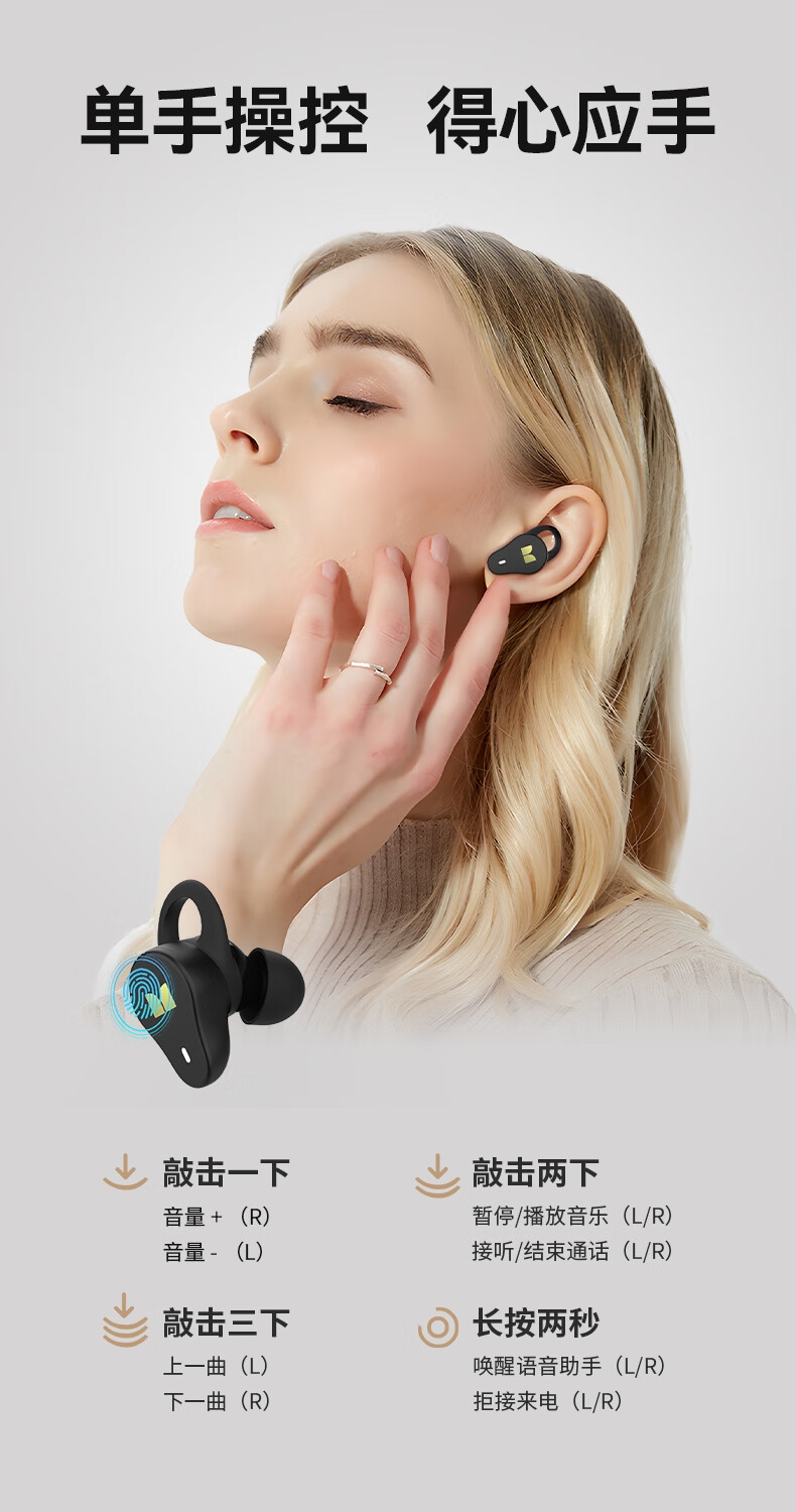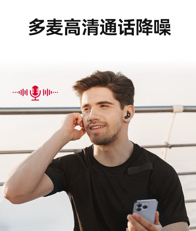 小巧便携的储电收纳仓,圆形造型如“鹅卵石”般握感;适配不同规格的硅胶耳塞,自由随心佩戴;佩戴舒适稳固,运动不易掉落,听歌不漏音;支持ENC通话降噪,MEMS数字硅麦克风