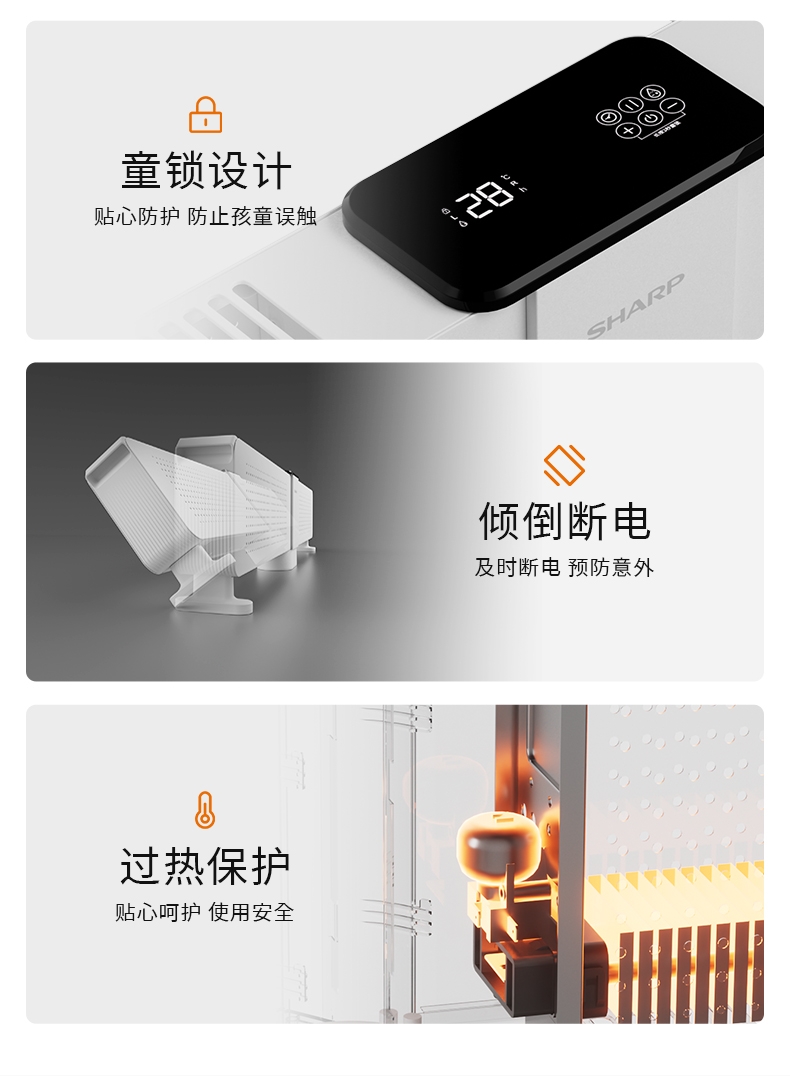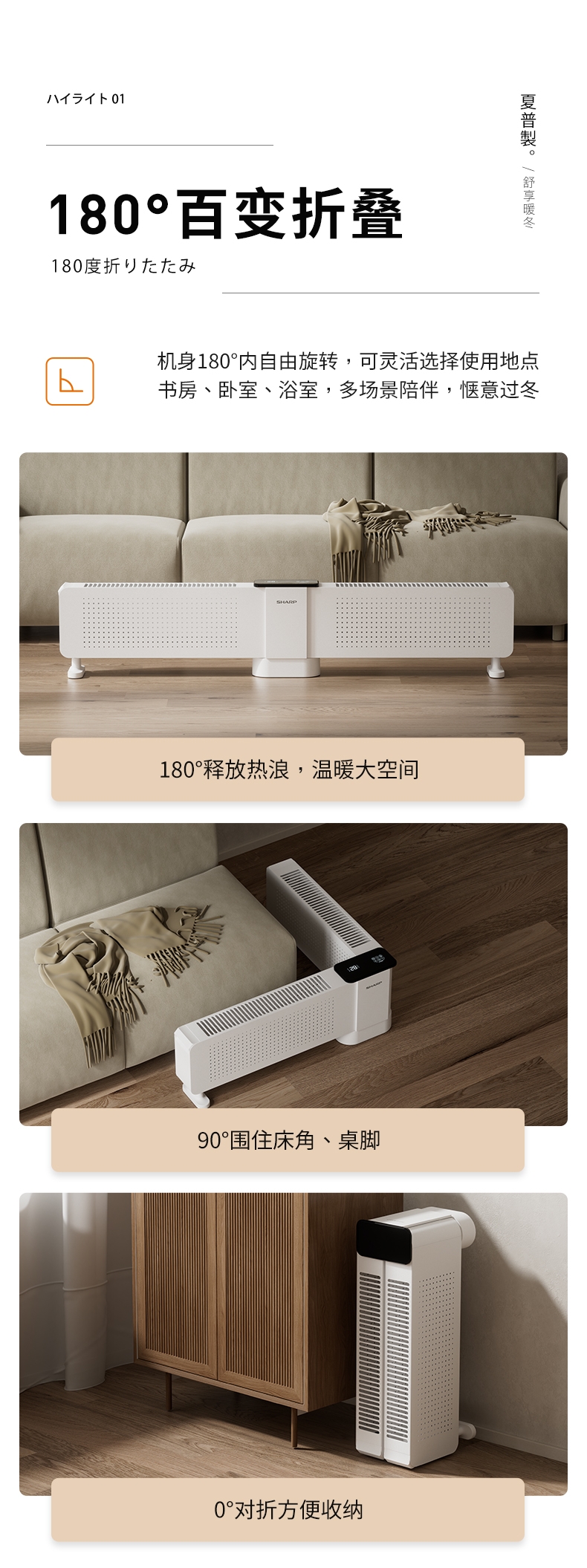 夏普 折叠踢脚线取暖器语音HX-BR226B-W
