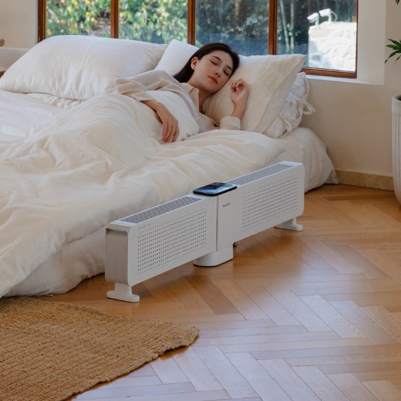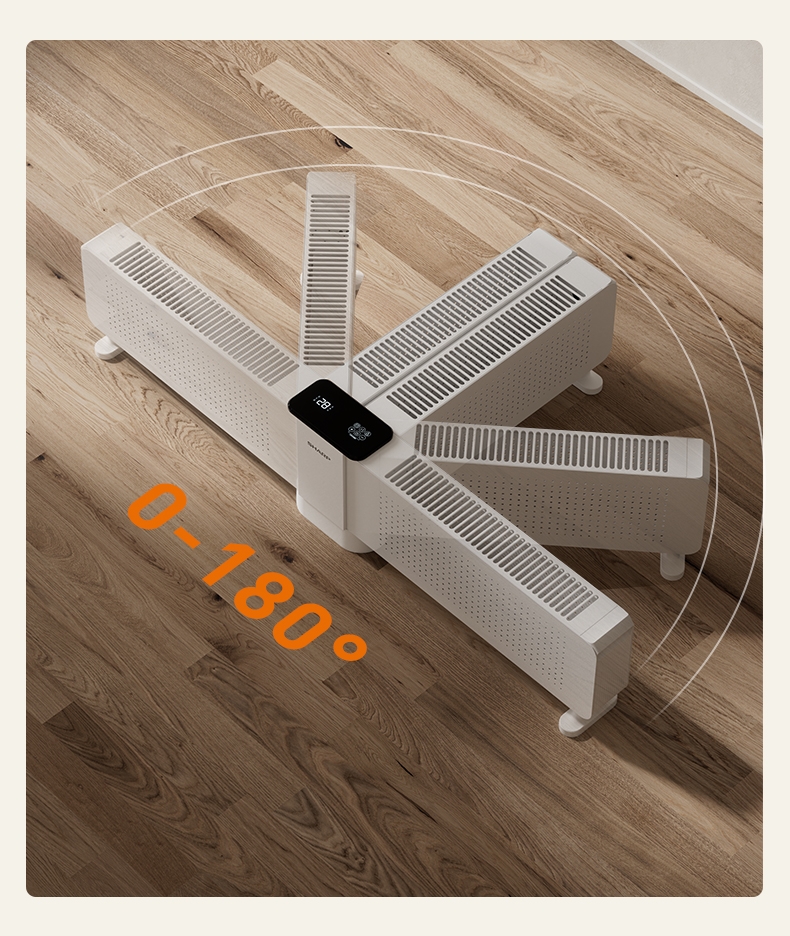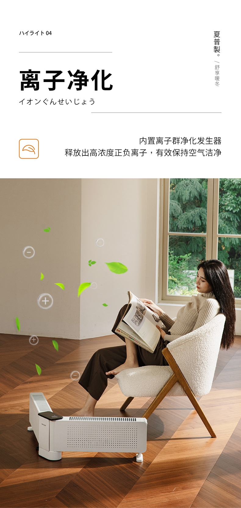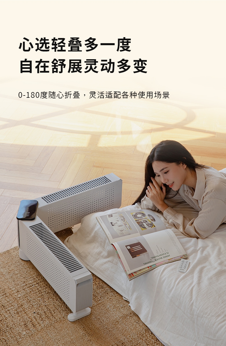 操作方式:遥控+触控+声控 三重操作方式;发热体:石墨烯铝片发热体;档位功率:2200W、1100W两档功率