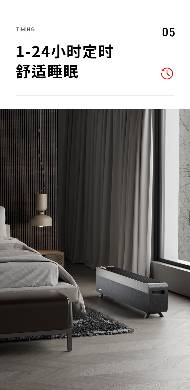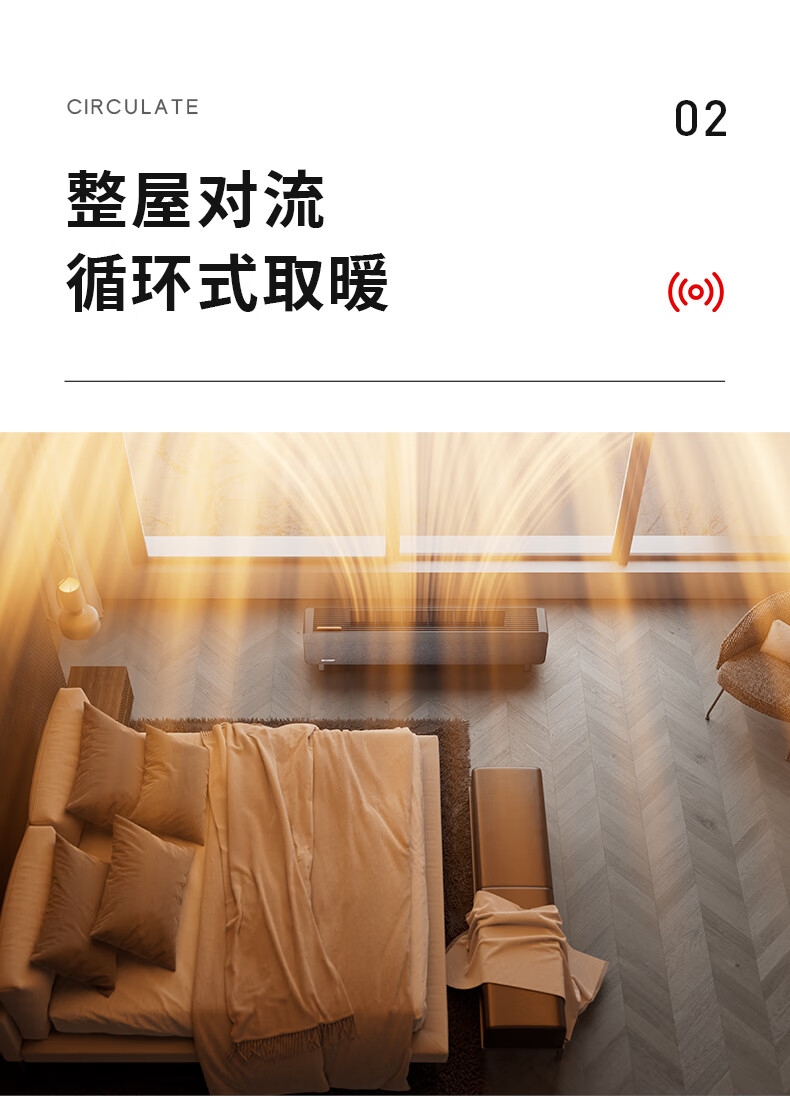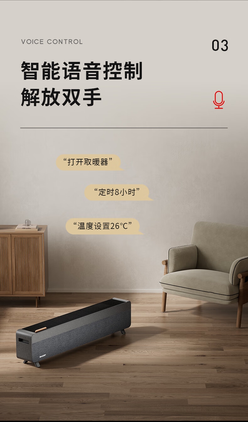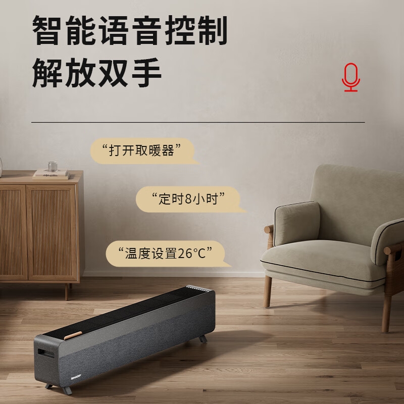 操作方式:遥控+触控+声控 三重操作模式;功率档位:1100W、2200W两档功率;发热体:石墨烯铝片发热