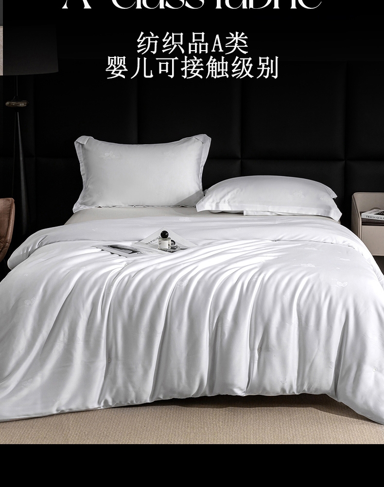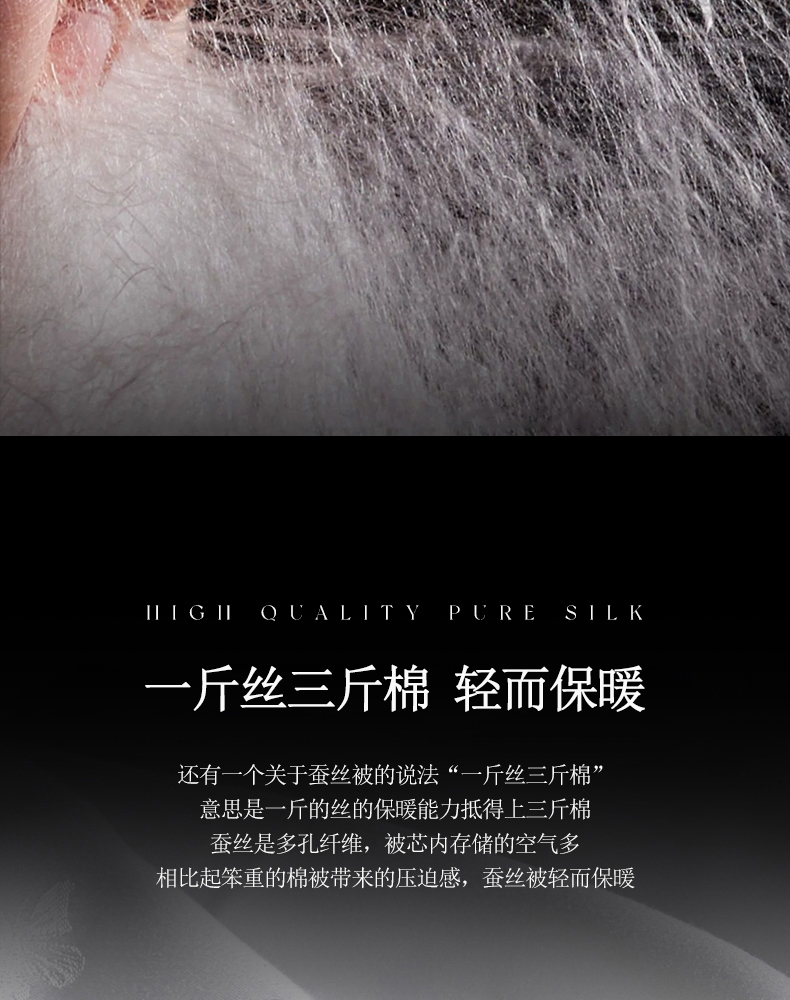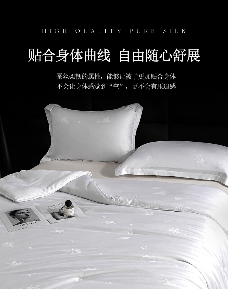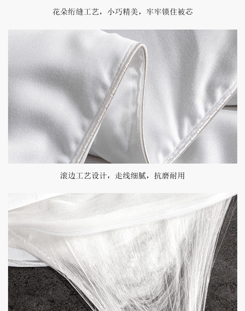 A类婴儿可接触级别,100%蚕丝(中蚕丝)填充;绗缝设计,美观又温暖;彩盒、无纺布两种包装,满足集采代发不同需求