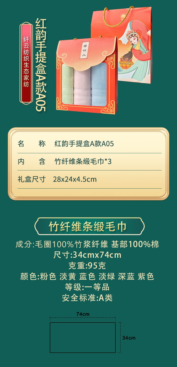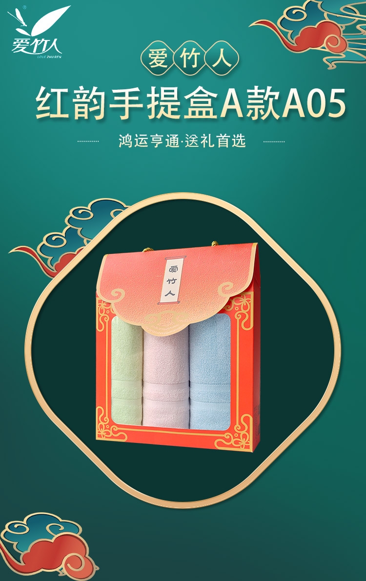爱竹人 竹纤维条缎毛巾红韵礼盒3条装A05
