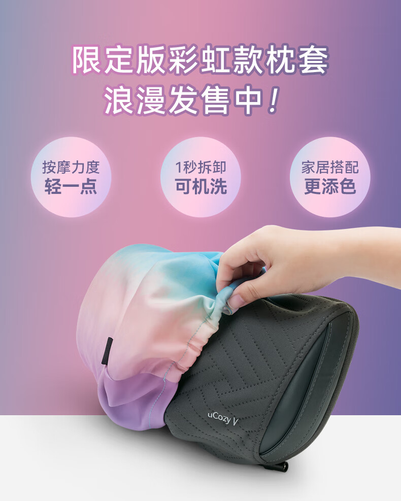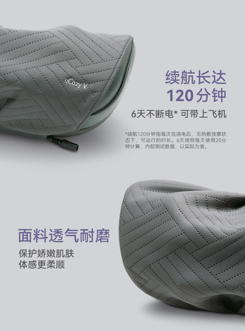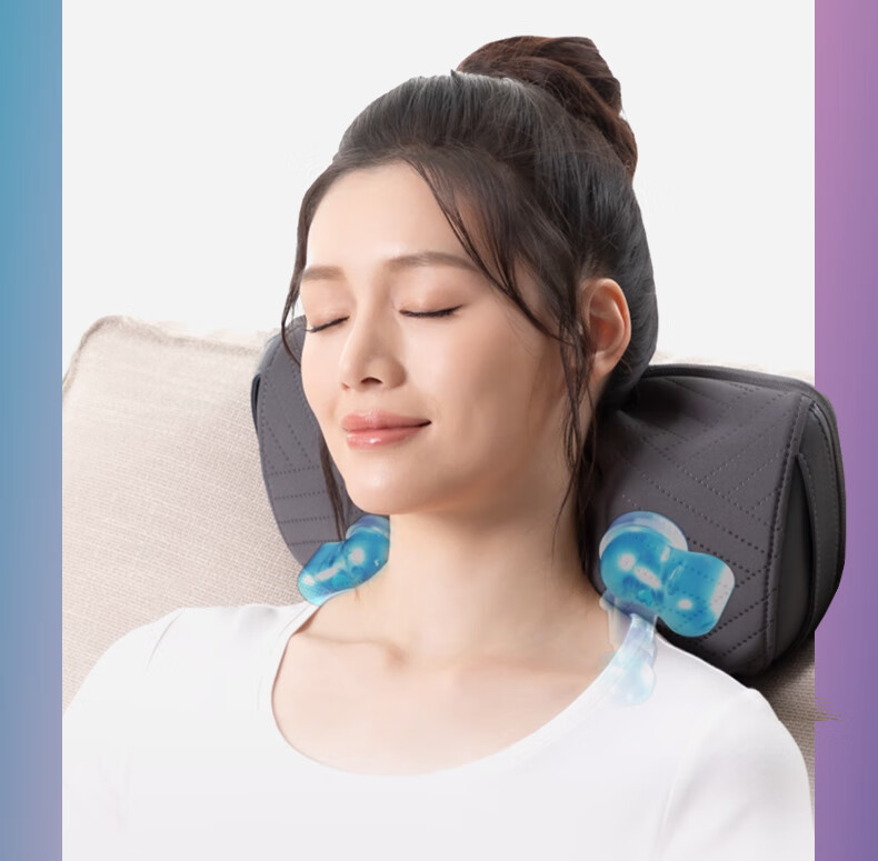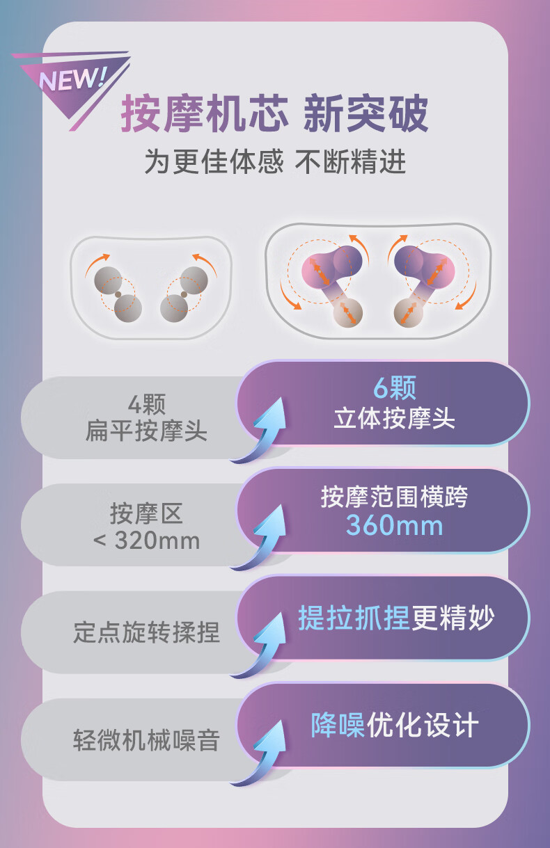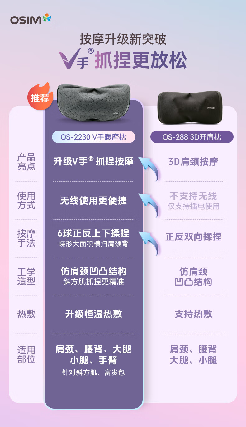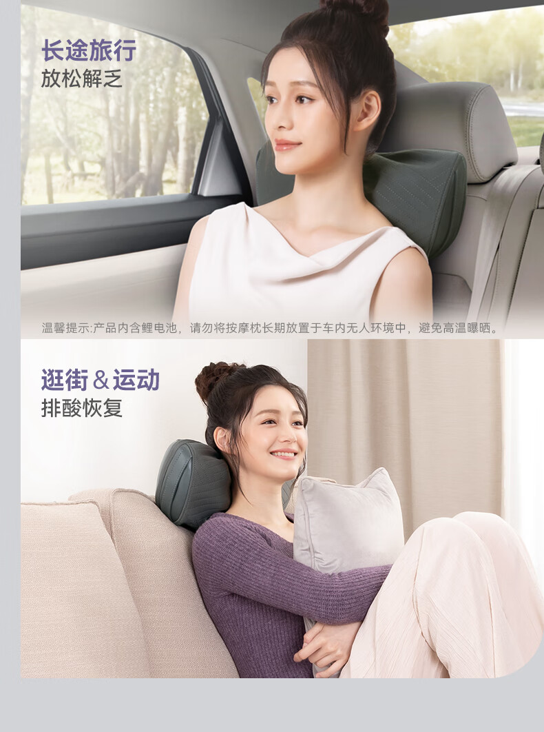 V手专利机芯精准开肩,针对斜方肌和富贵包;蝶形按摩轨迹,横扫酸痛死角,仿热石动感热敷促进循环;无线操作,轻巧便携,一机多用