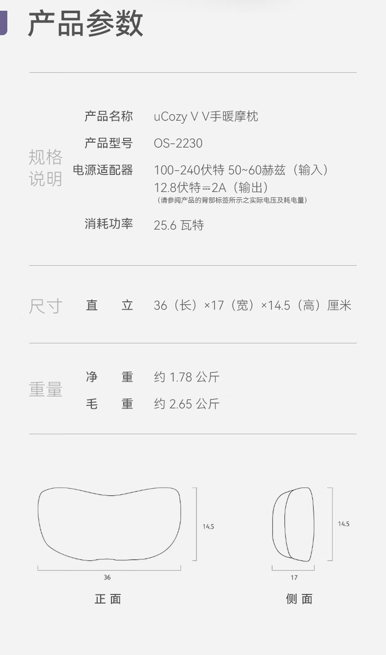 傲胜 OSIM颈椎靠枕V手暖摩枕OS-2230