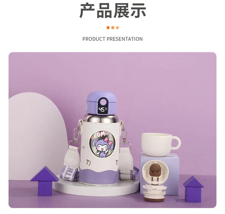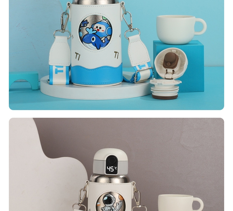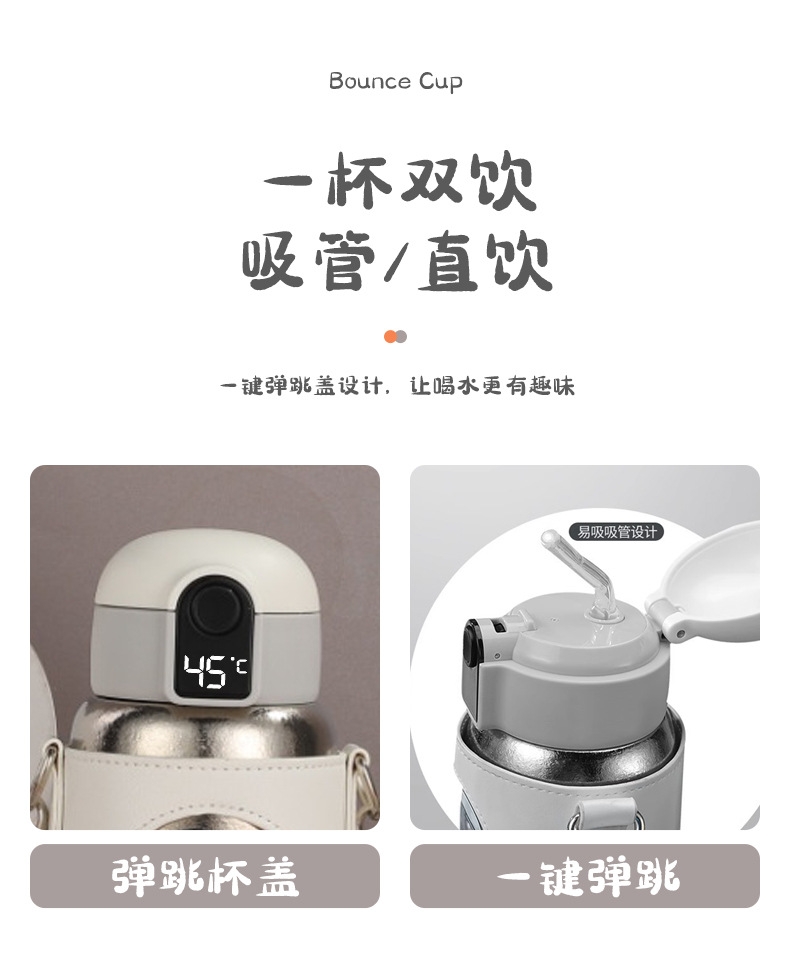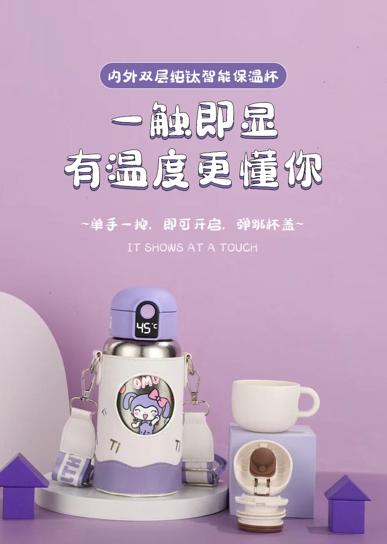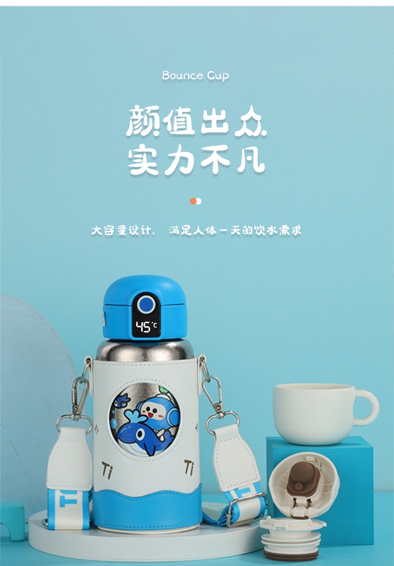 骏天 纯钛儿童保温杯温显吸管杯水壶Ti8010