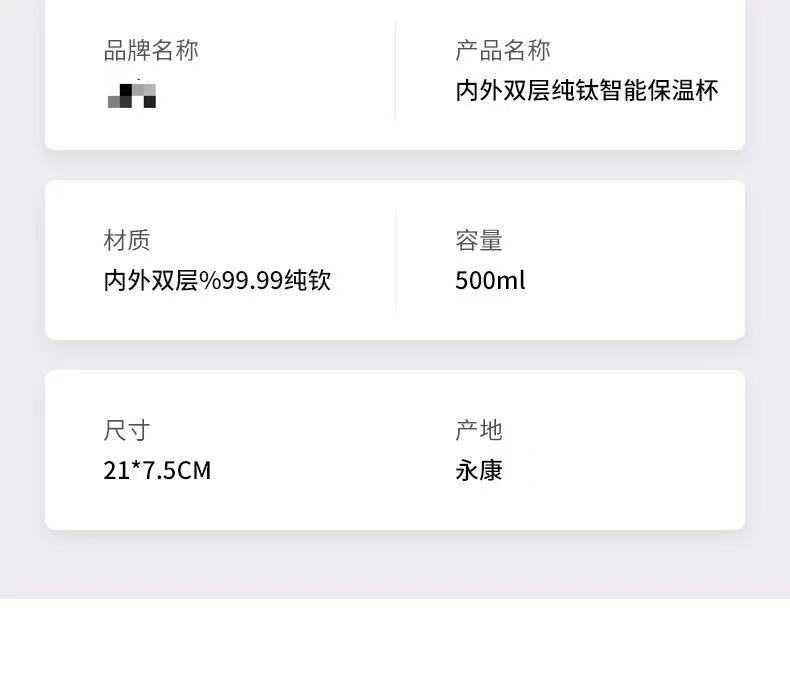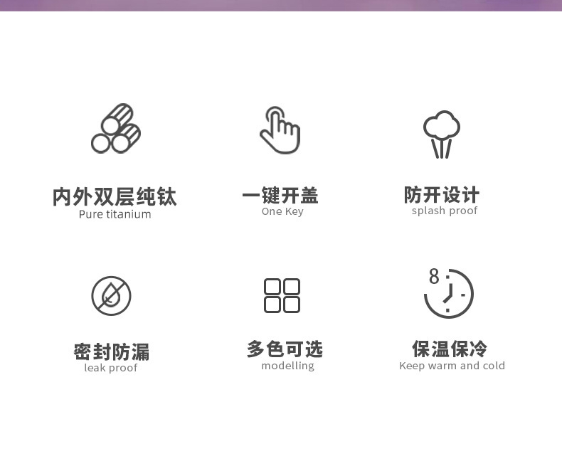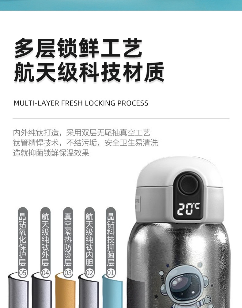 材质:99.88%内外双层纯钛,杯盖:PC+PP