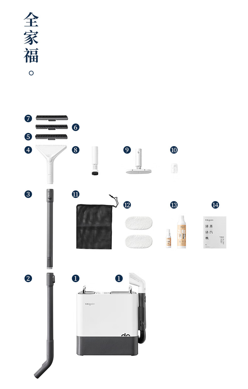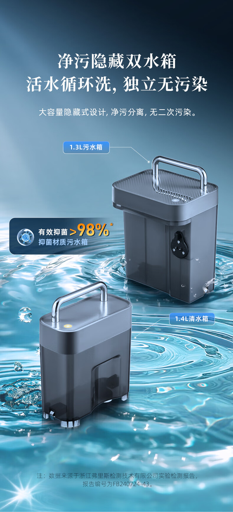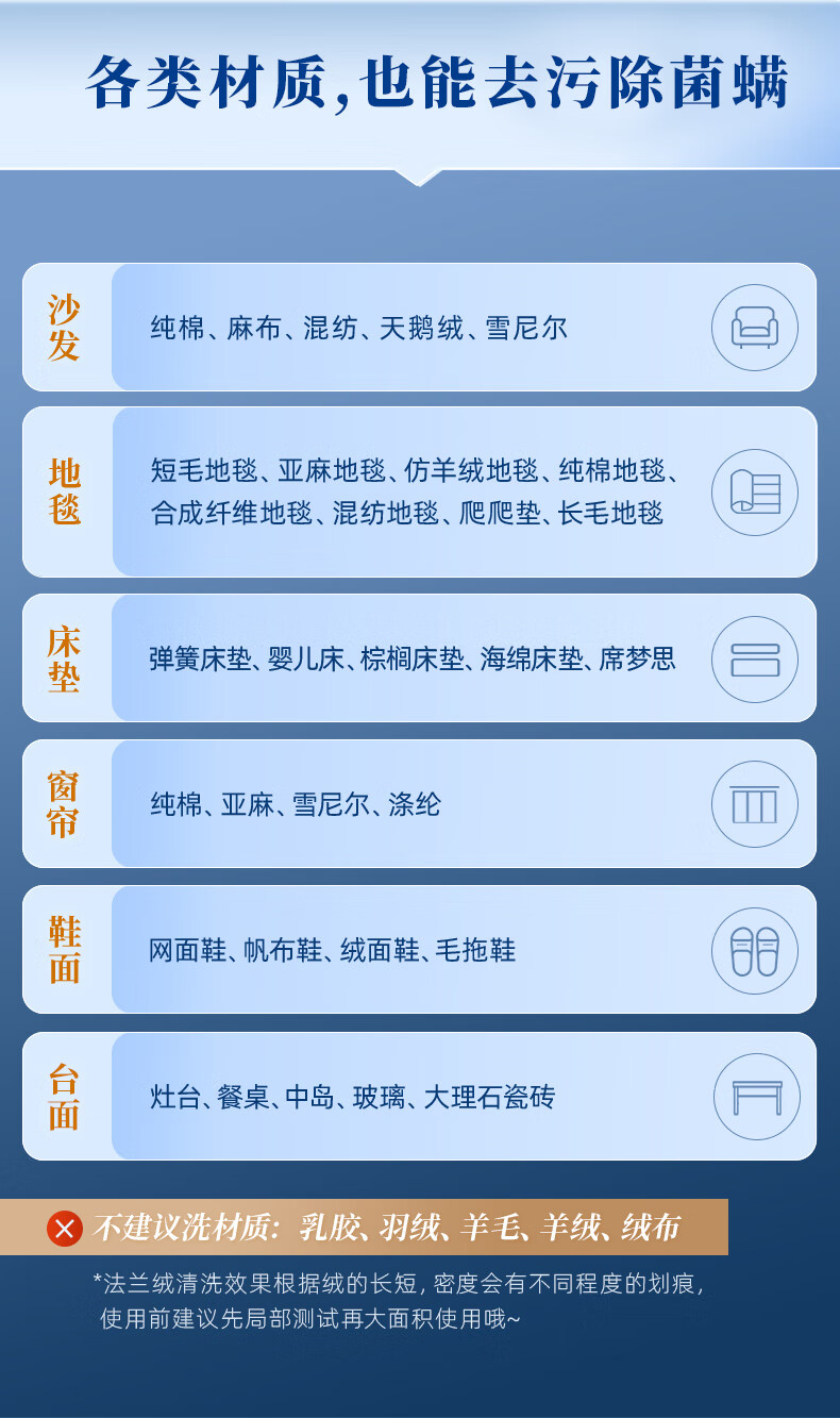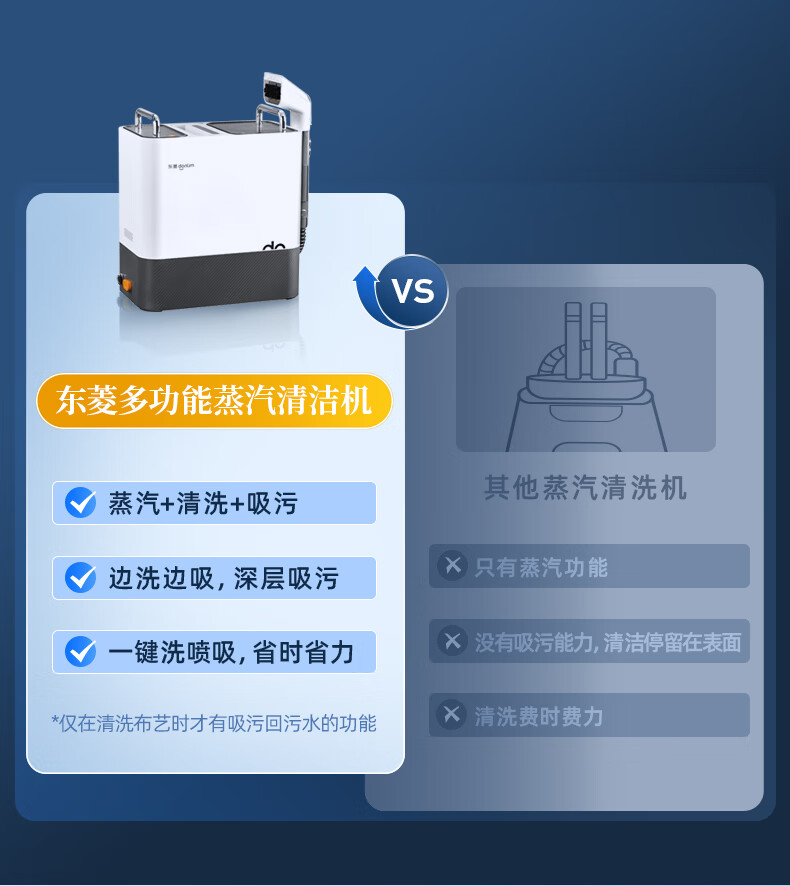 专刷专用,长短杆搭配,地毯清洁不弯腰;170℃蒸汽喷洗,强力直喷除污除菌;强力清洁液350mL+50mL顽固清洁液),一键收