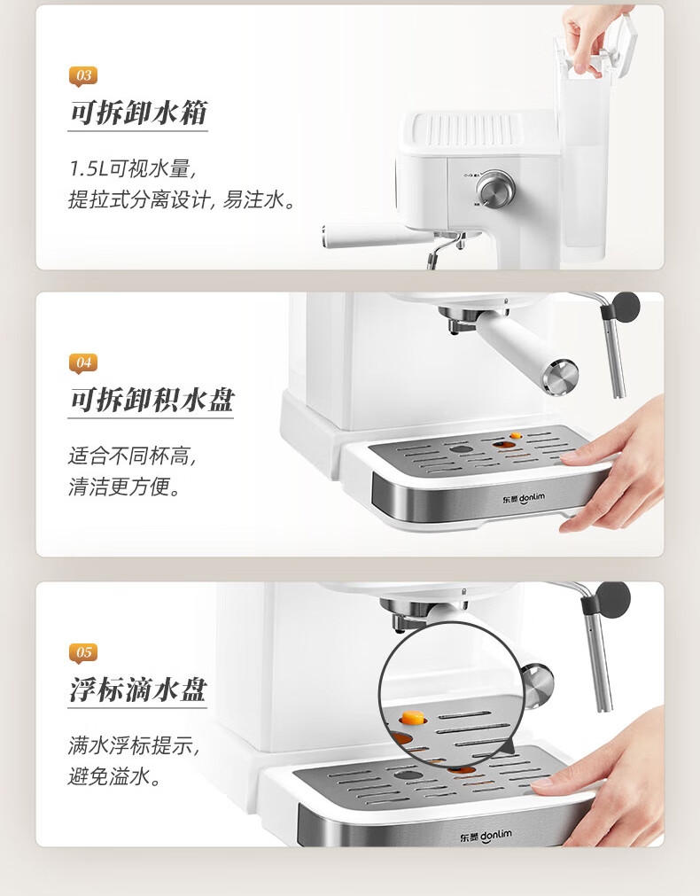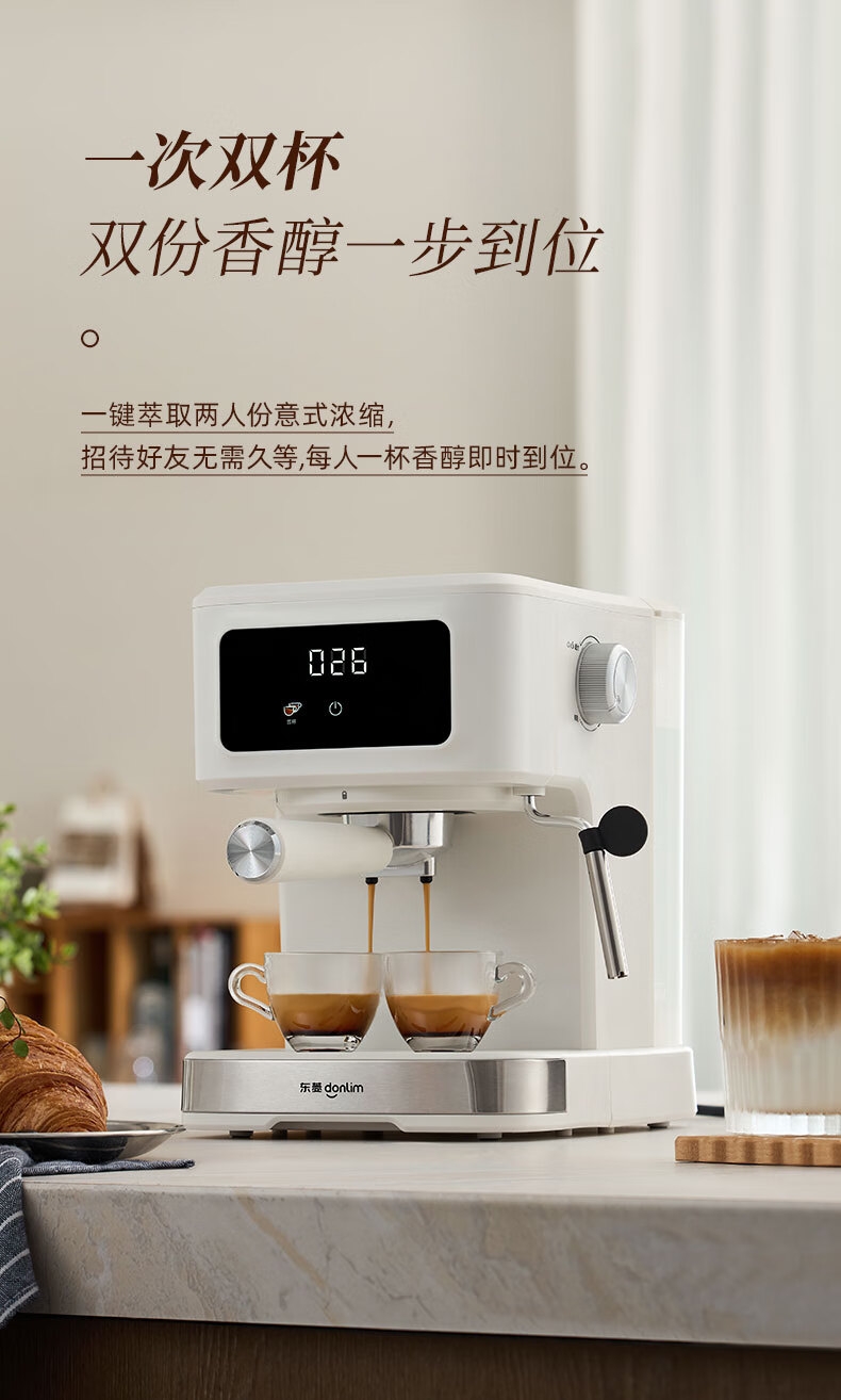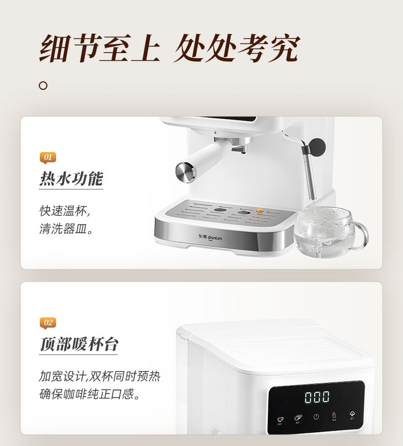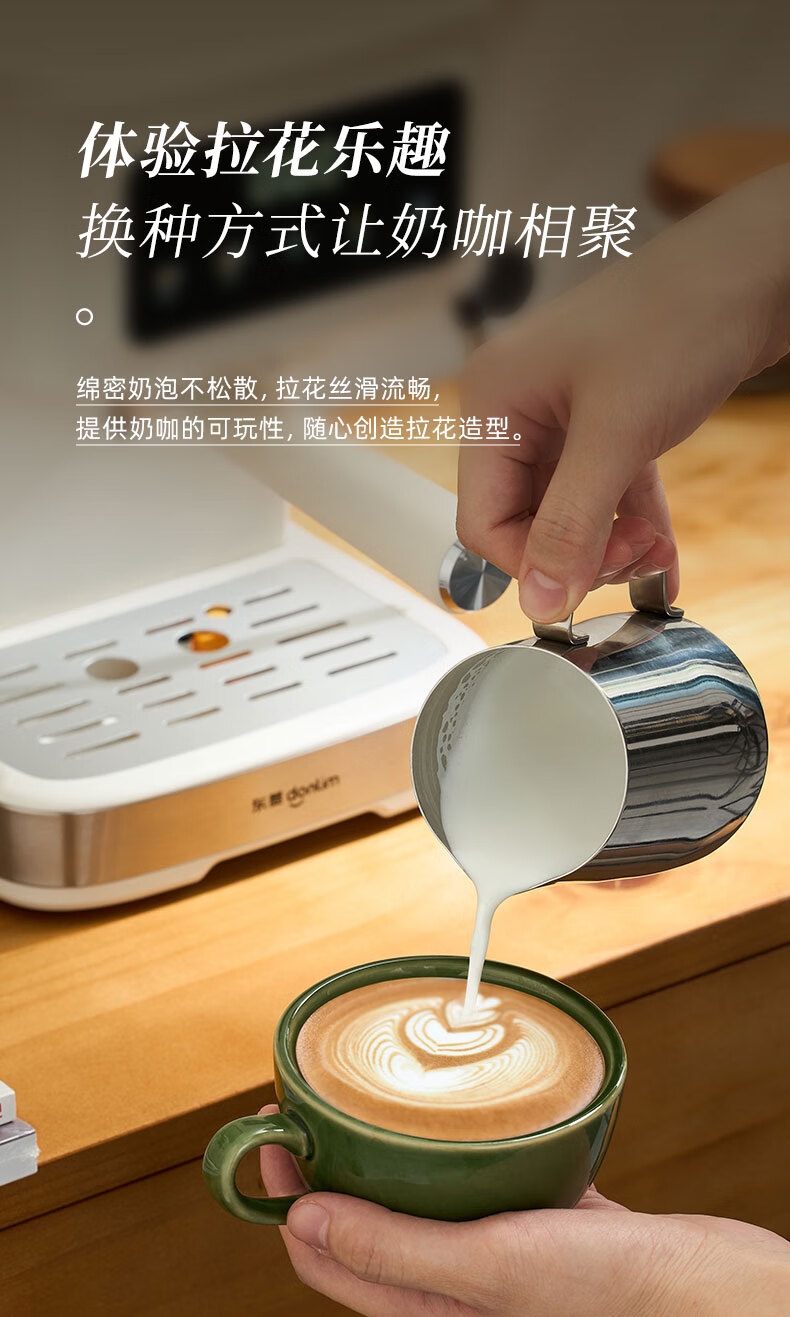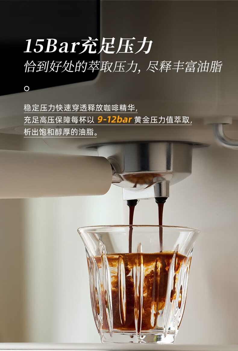 简单一键萃取,单/双杯随心选;强劲干燥蒸汽,打出绵密奶泡;可视化智触彩屏,萃取时间更直观