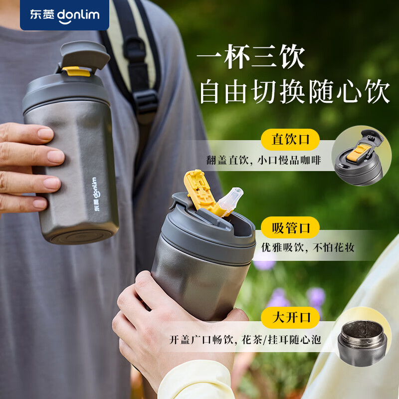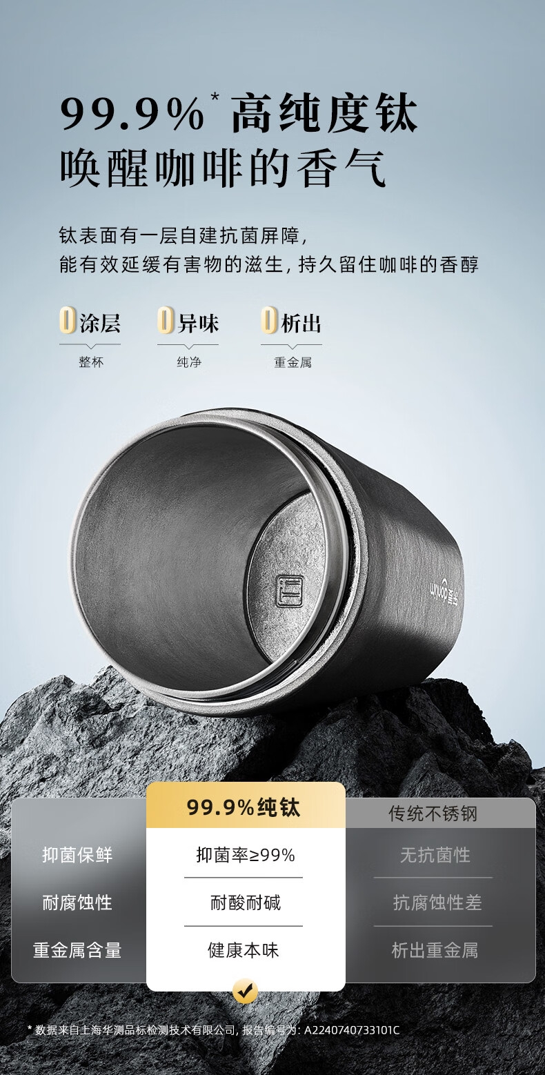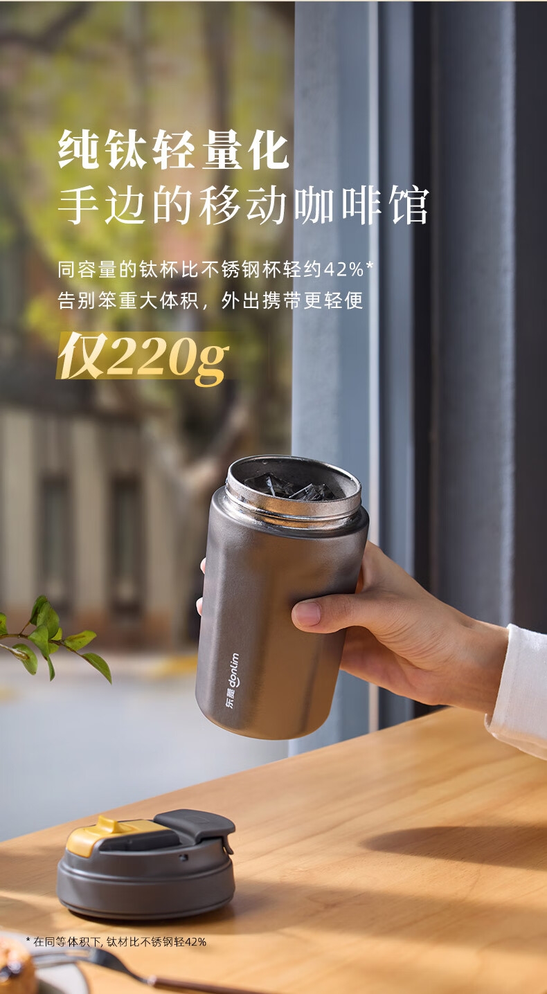 99%双层纯钛,不含重金属,泡茶更纯正;保鲜12小时,保温保冷6小时;3种开盖饮水方式,适合各种人群