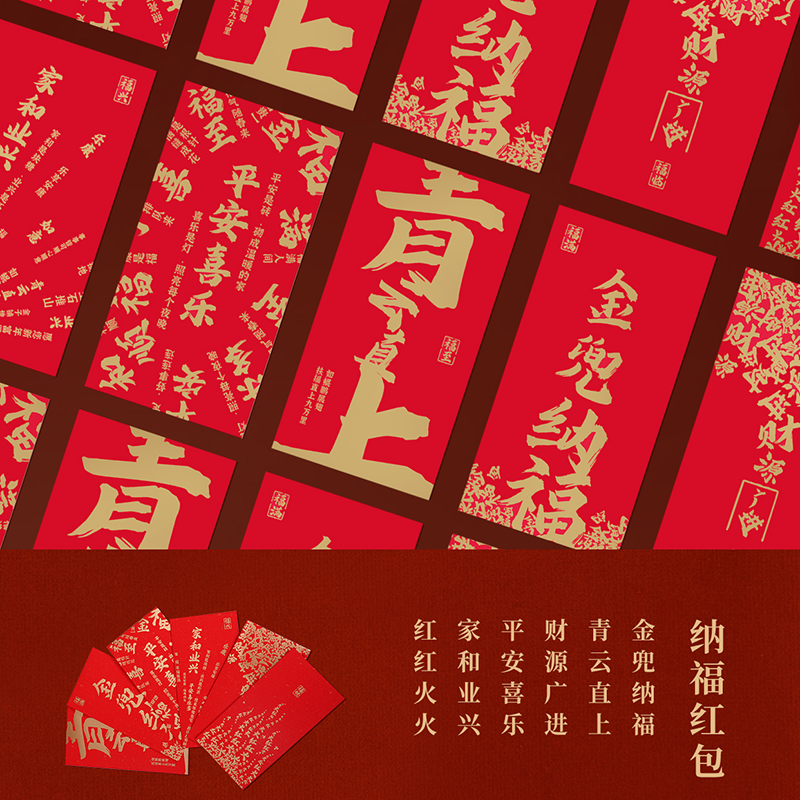 贪吃猫文创 新年金线福字红包礼盒便携礼盒