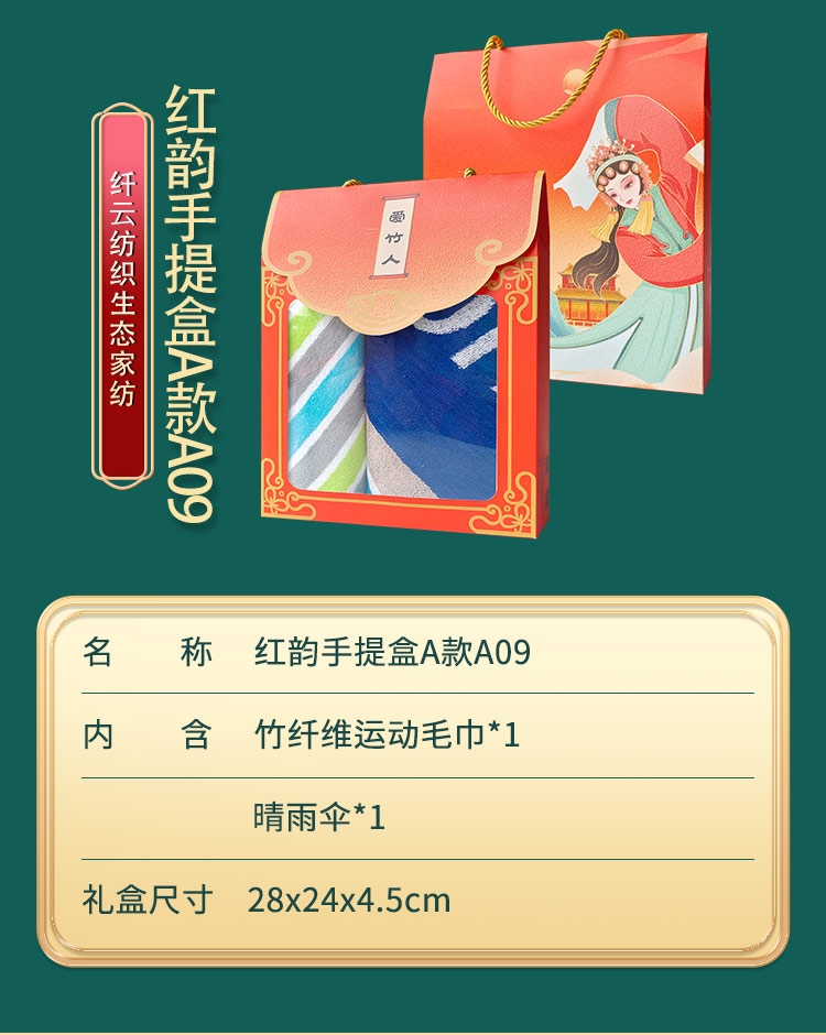 爱竹人 红韵礼盒运动毛巾晴雨伞2件套A09
