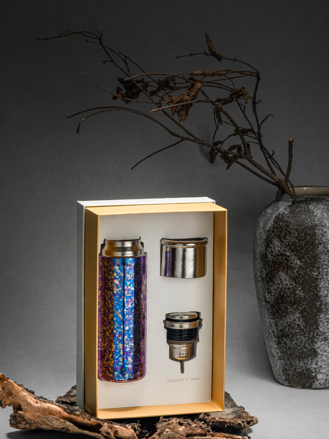采用晶钻高温烧制技术,天然冰花结晶质感;内外双层纯钛材质,抑菌保鲜,耐酸碱耐腐蚀;超轻手感携带无忧