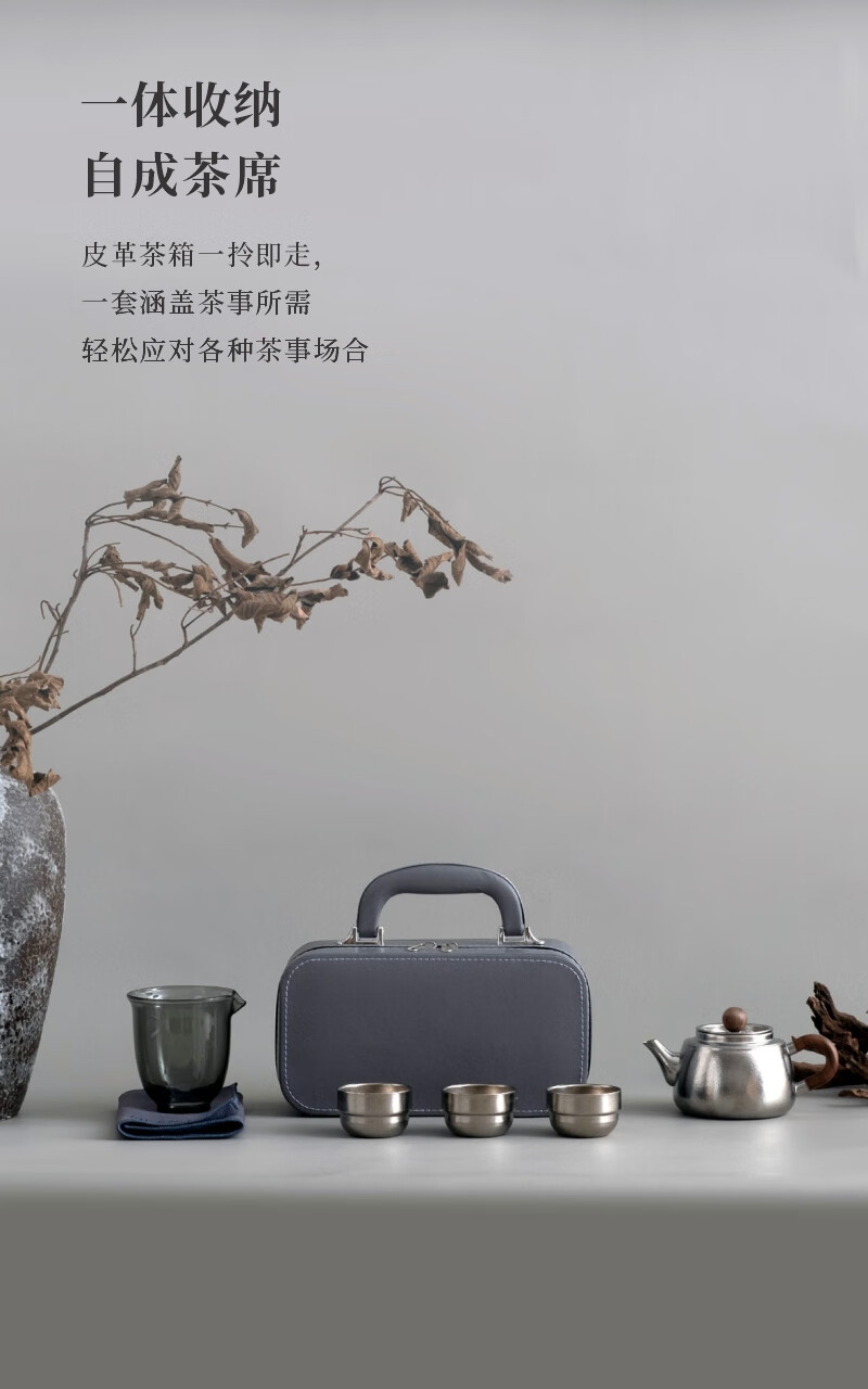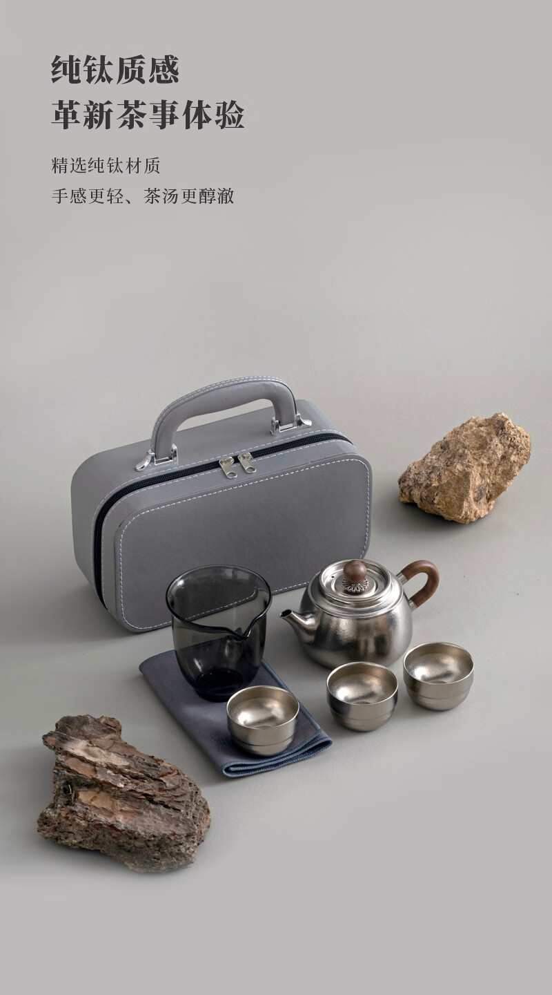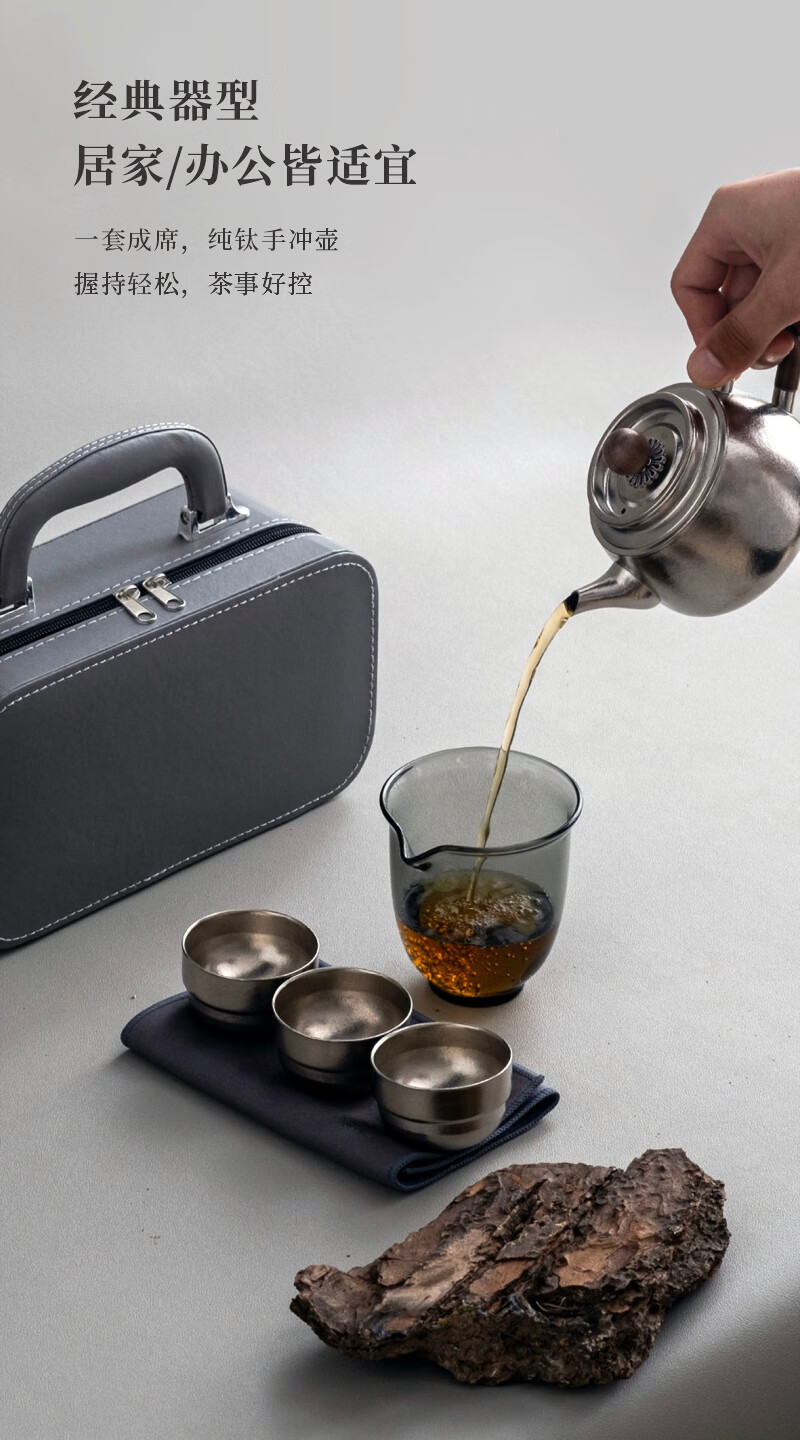 一套成席,随时随地乐享茶事;超轻手感,轻简出行;纯钛材质,喝出茶汤本味