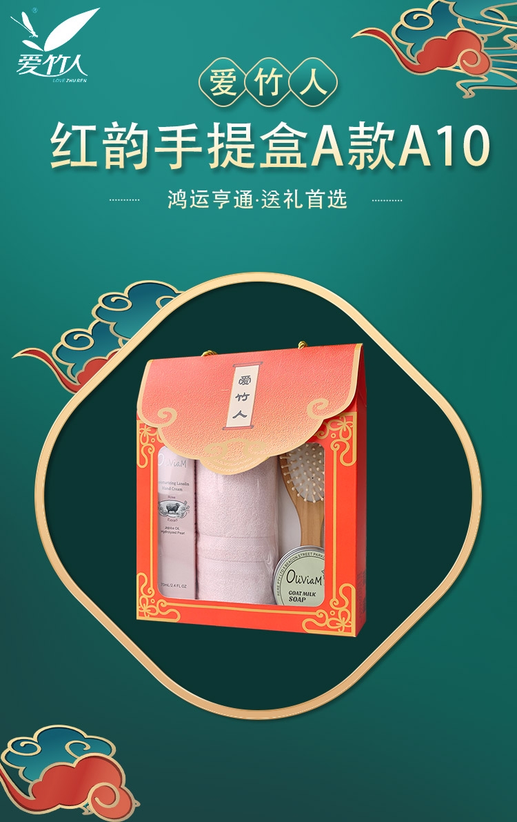 爱竹人 毛巾羊奶皂护手霜梳子4件套A10