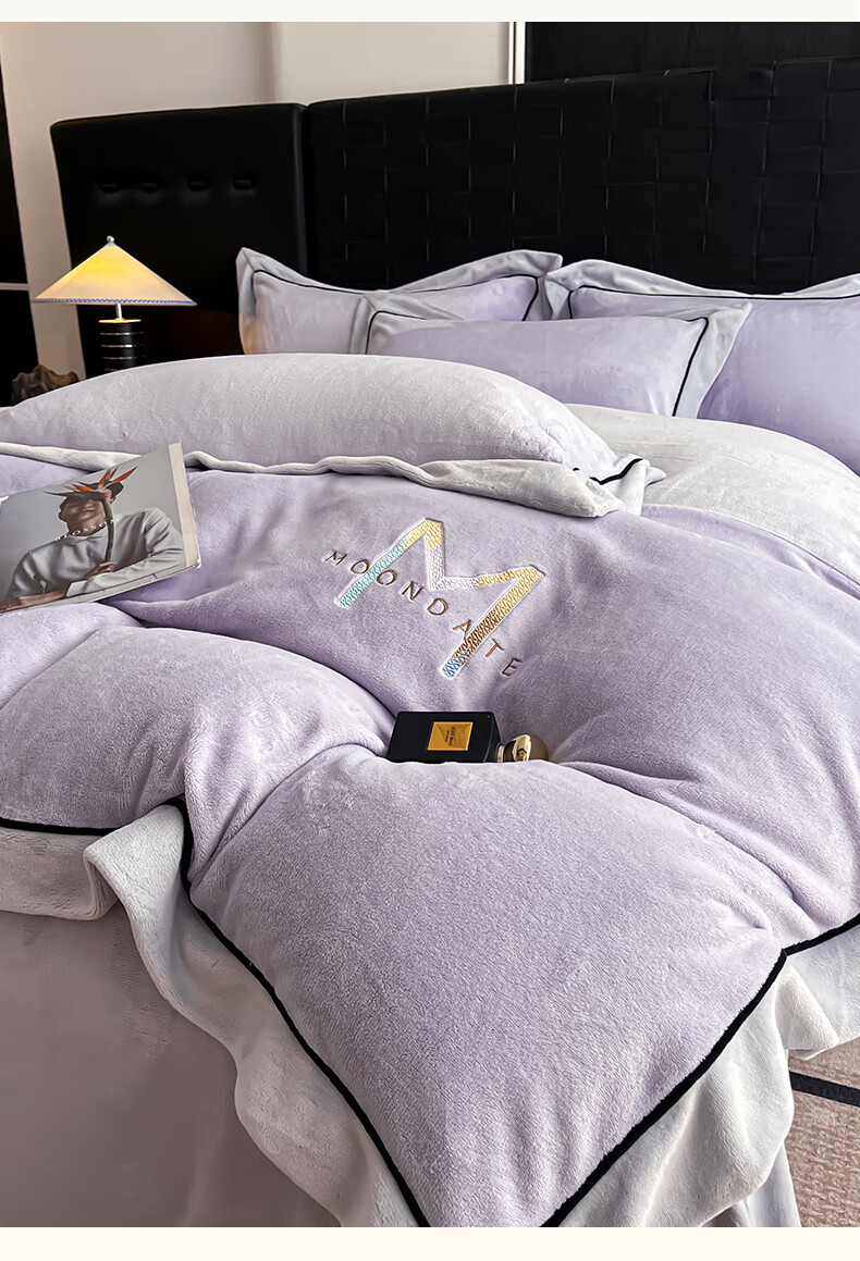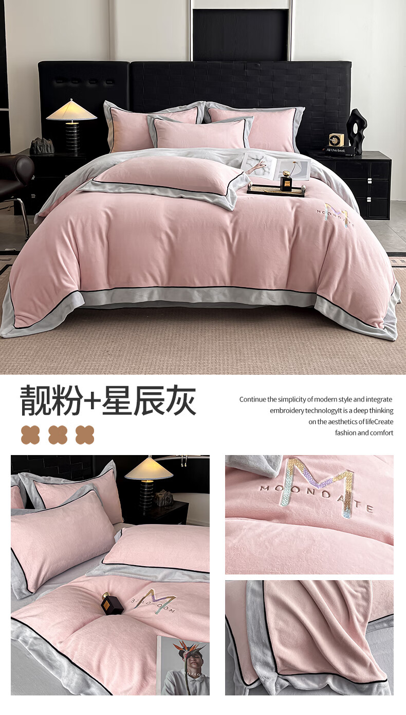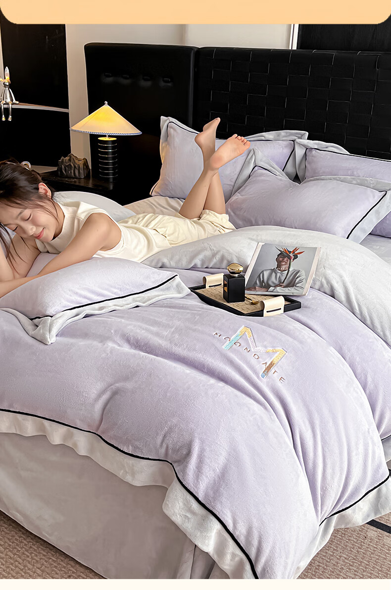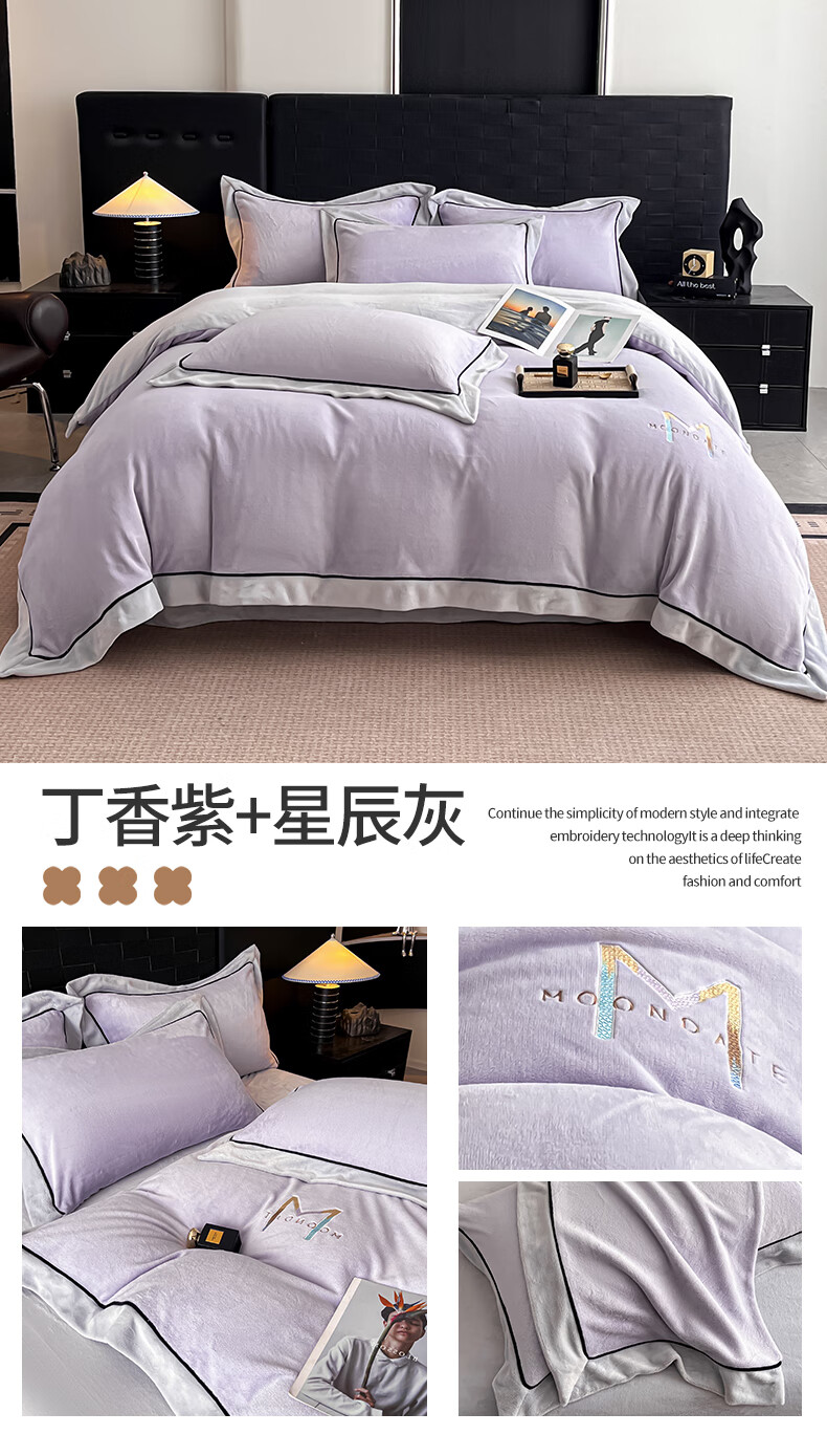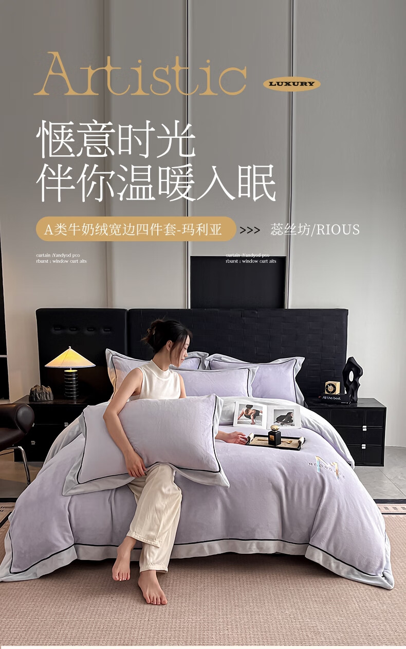 蕊丝坊 牛奶绒宽边四件套高克重玛利亚