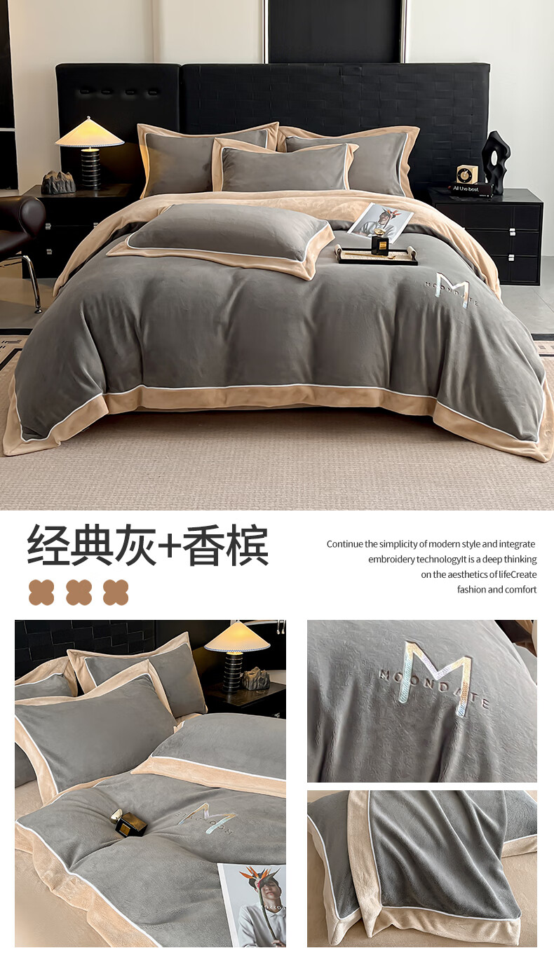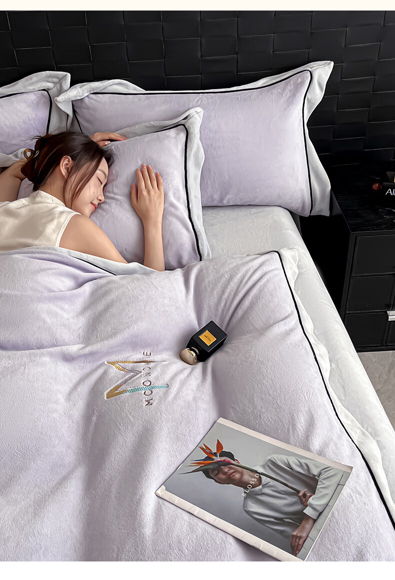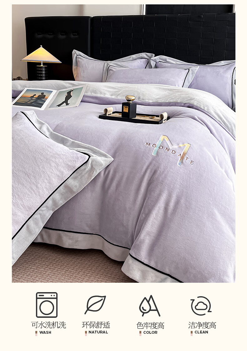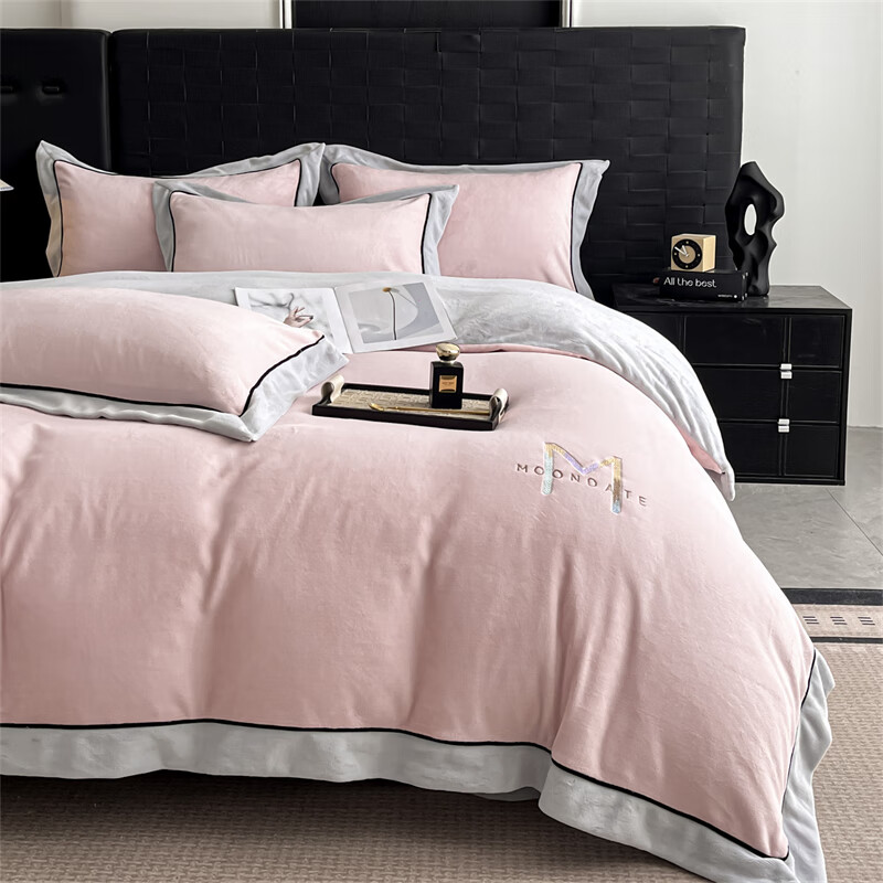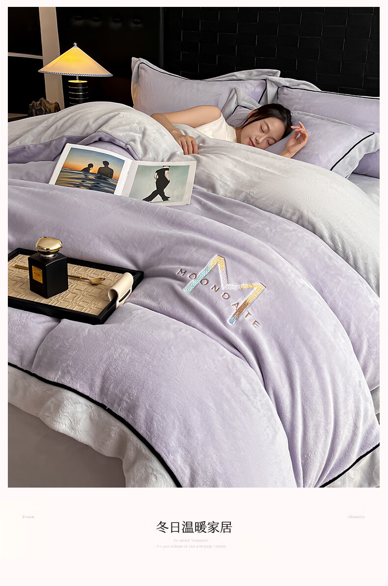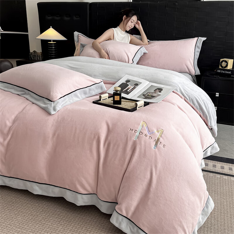 蕊丝坊 牛奶绒宽边四件套高克重玛利亚