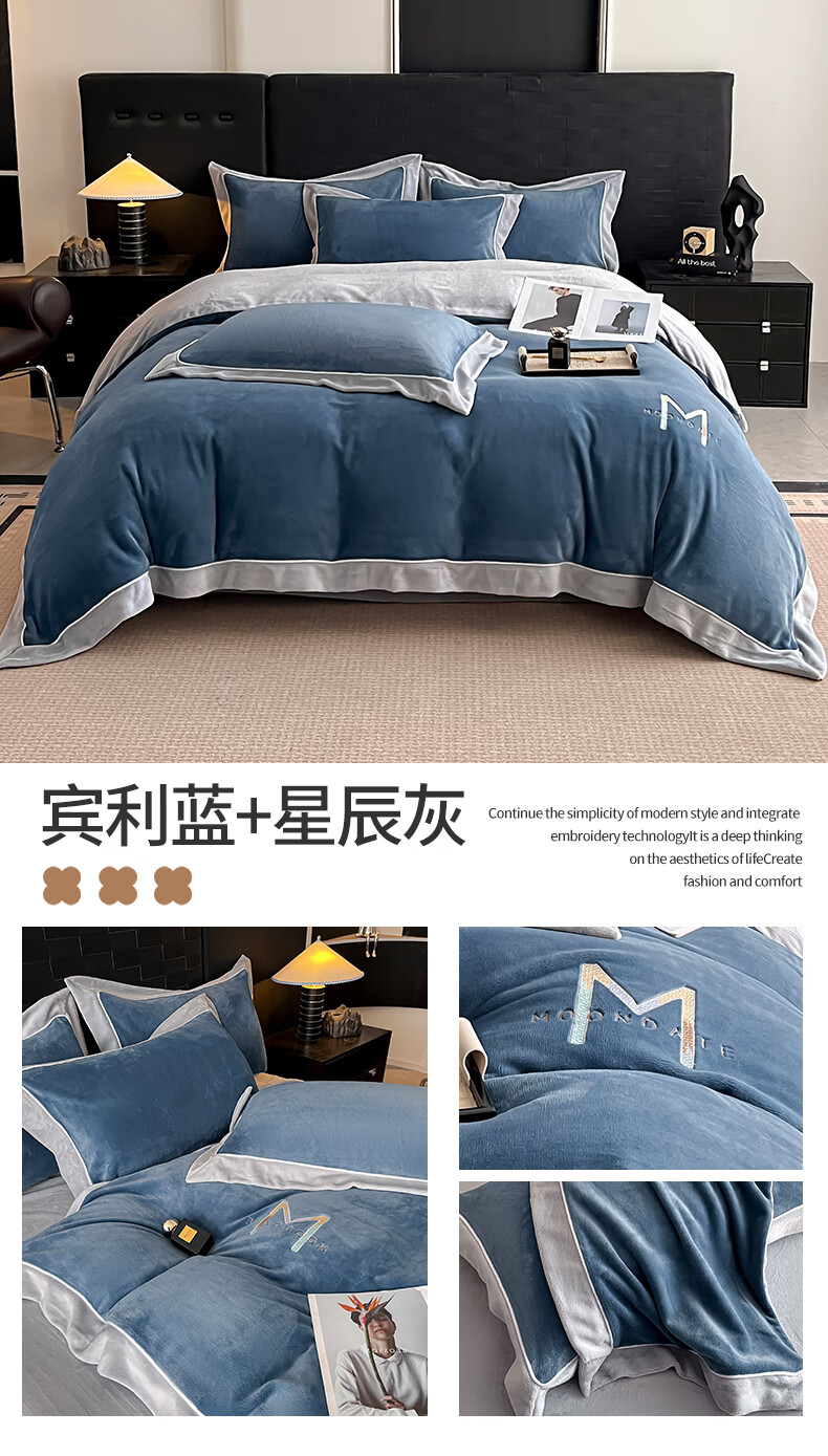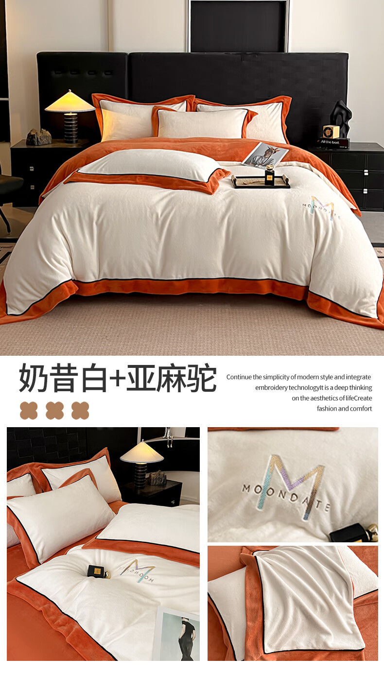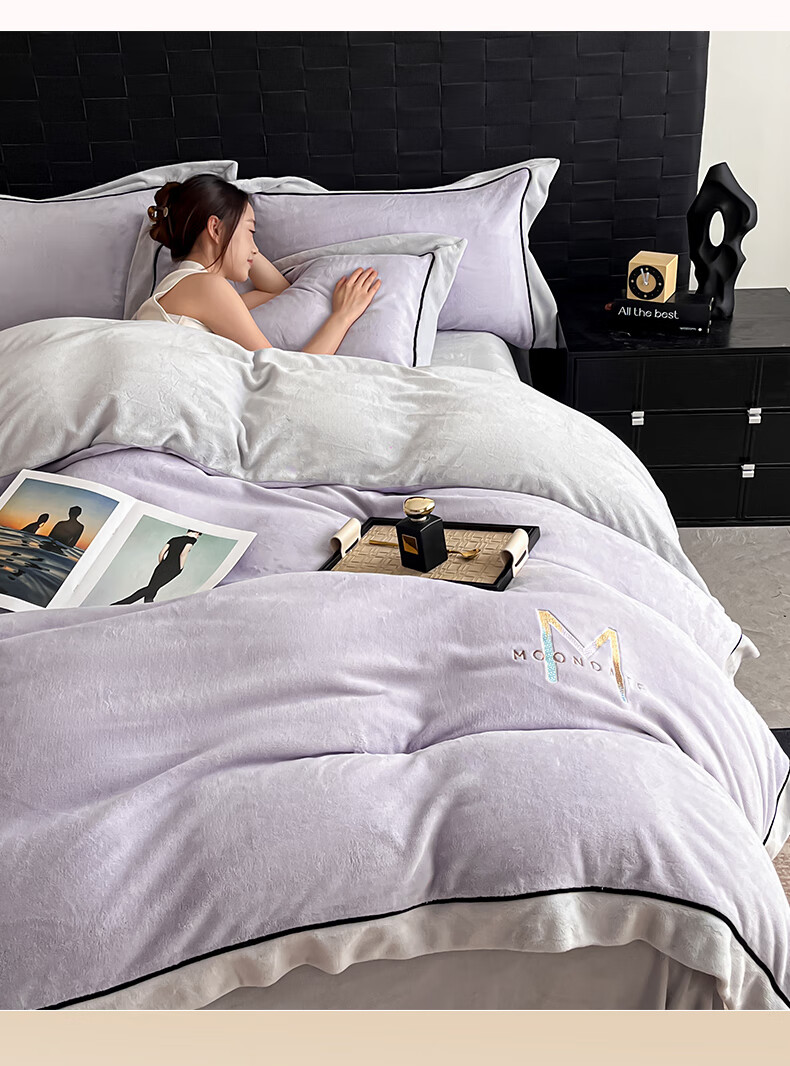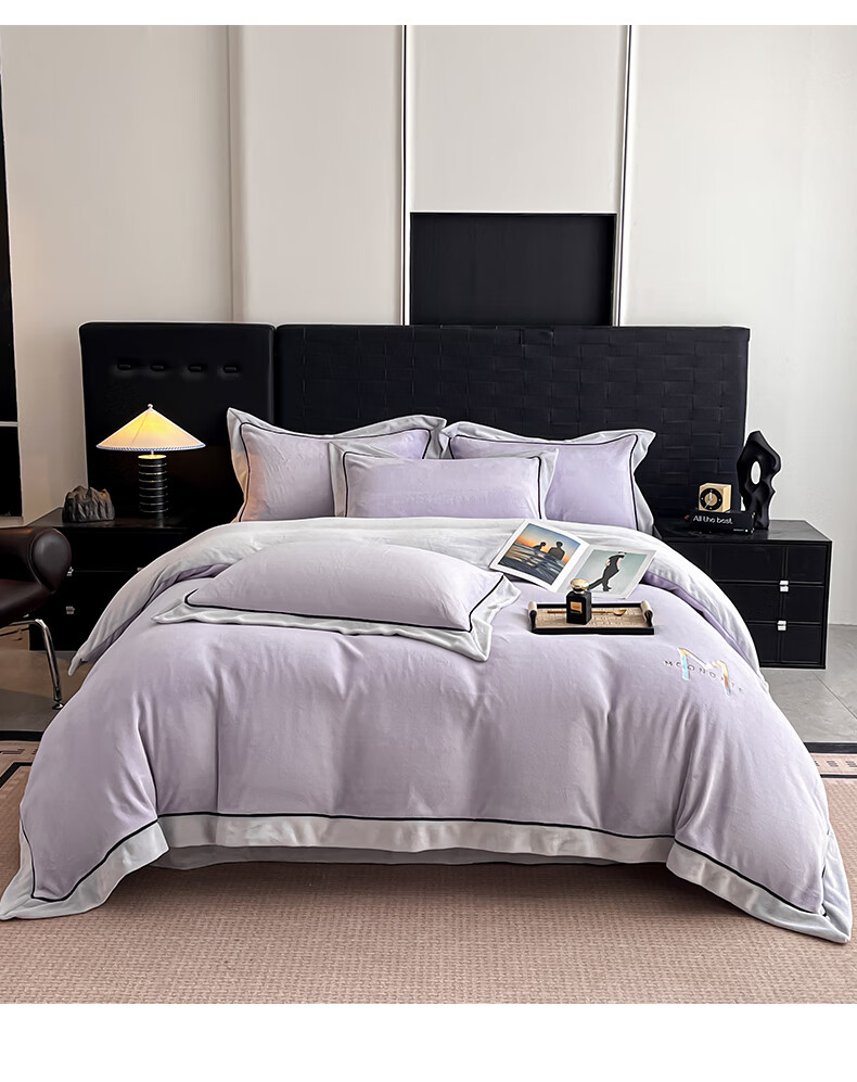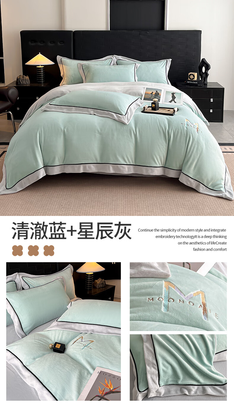 蕊丝坊 牛奶绒宽边四件套高克重玛利亚