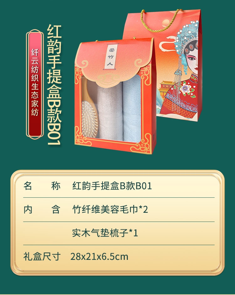 爱竹人 红韵礼盒竹纤维毛巾梳子3件套B01