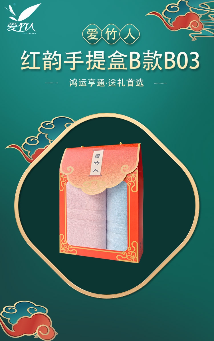 爱竹人 红韵礼盒竹纤维浴巾毛巾2件套B03