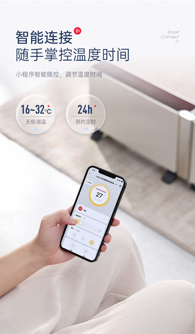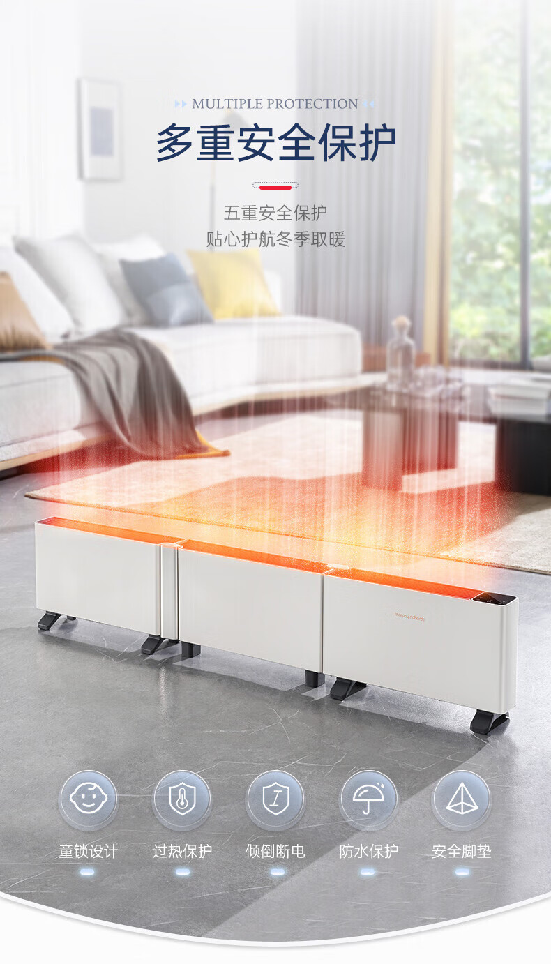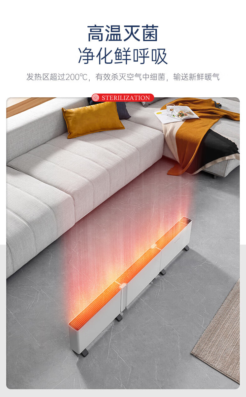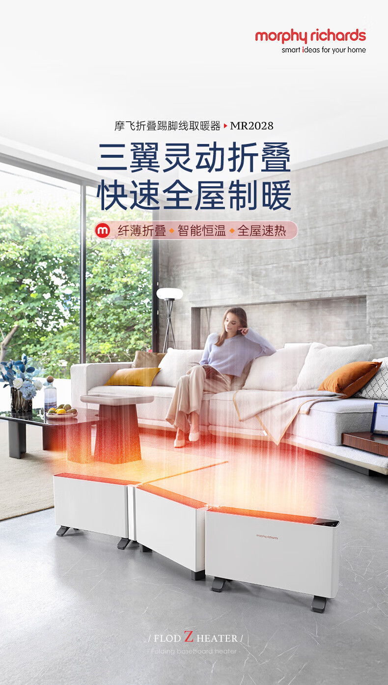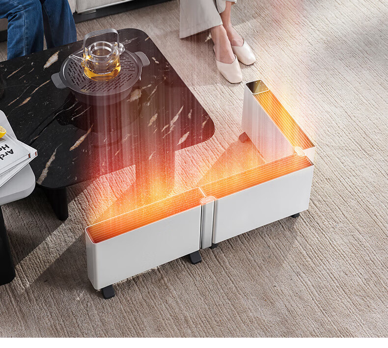 7.5cm超薄设计、三板折叠;采用软胶垫底脚设计,保护地板;采用三组黑金材料石墨烯发热体