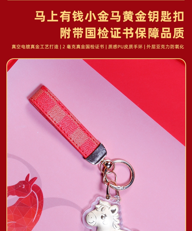 配置贴心拿到就可以开始体验;另外配置一枚0.2mg含量的小金马吊坠;免费定制logo以及祝福