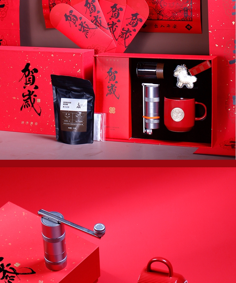 配置清单:科曼手磨咖啡机*1 意式拼配咖啡豆*1袋(100克) 玻璃保鲜便携豆罐*1咖啡杯*1 马上有钱小金马黄金钥匙扣*1 对联*1-红包*4 门神*2 精装礼盒手提袋*1