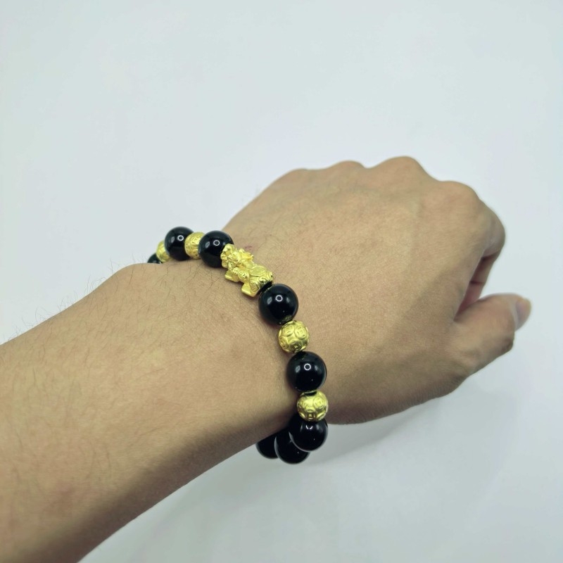 黑玛瑙沉静如夜,银镀金流光溢彩;红玛瑙炽烈似火,貔貅昂首纳祥瑞。;「一摸貔貅,运程旺盛」!传说貔貅护主招财,只进不出;以手串形式常伴腕间,寓意事业通达、财气汇聚