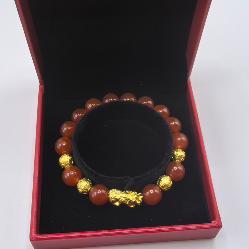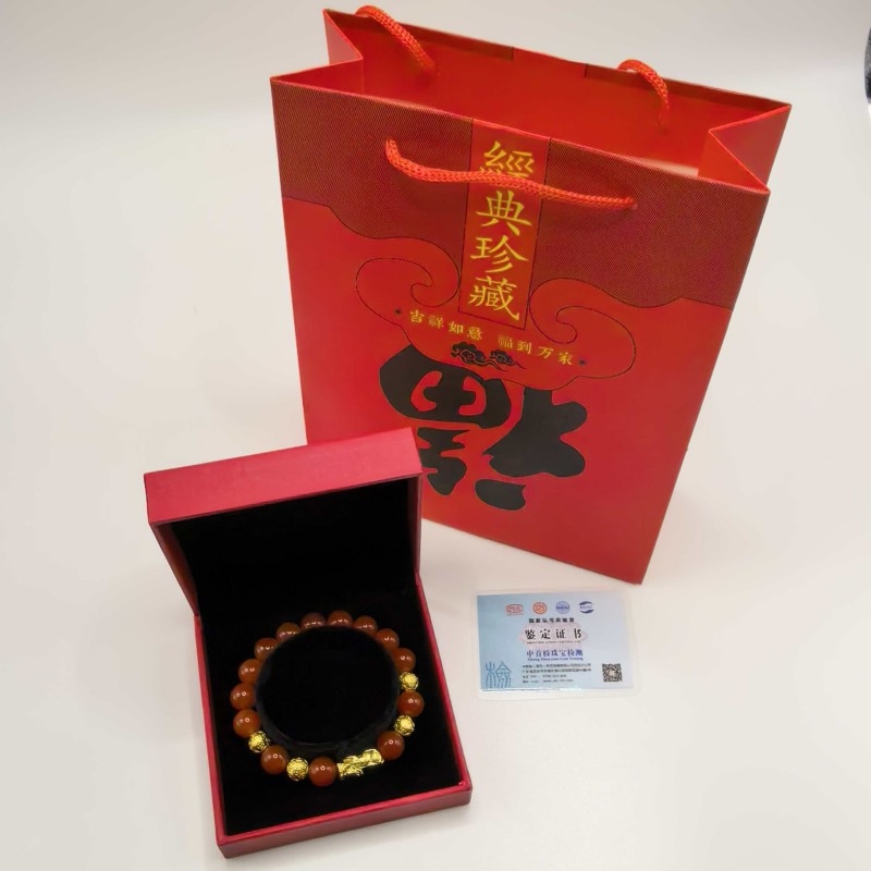 聚运鑫 银镀金玛瑙貔貅手串首饰