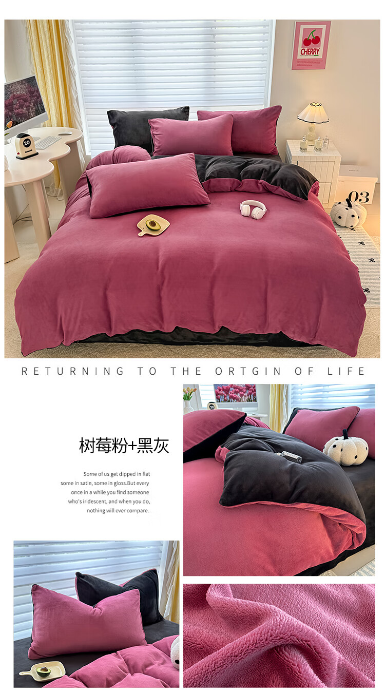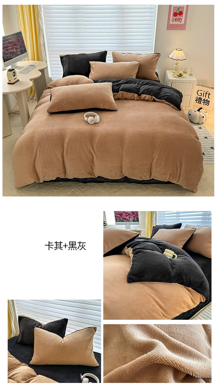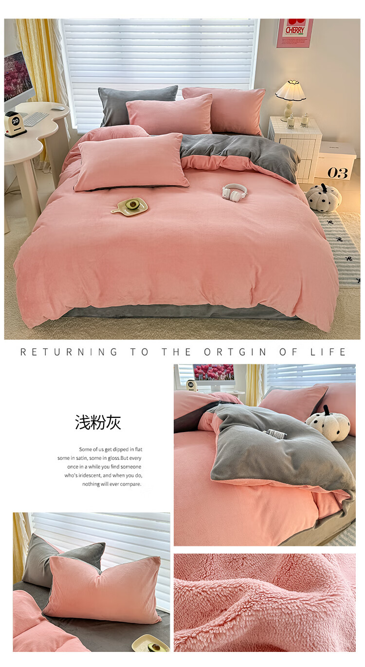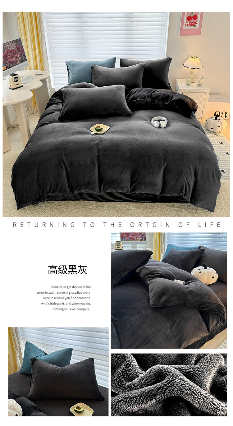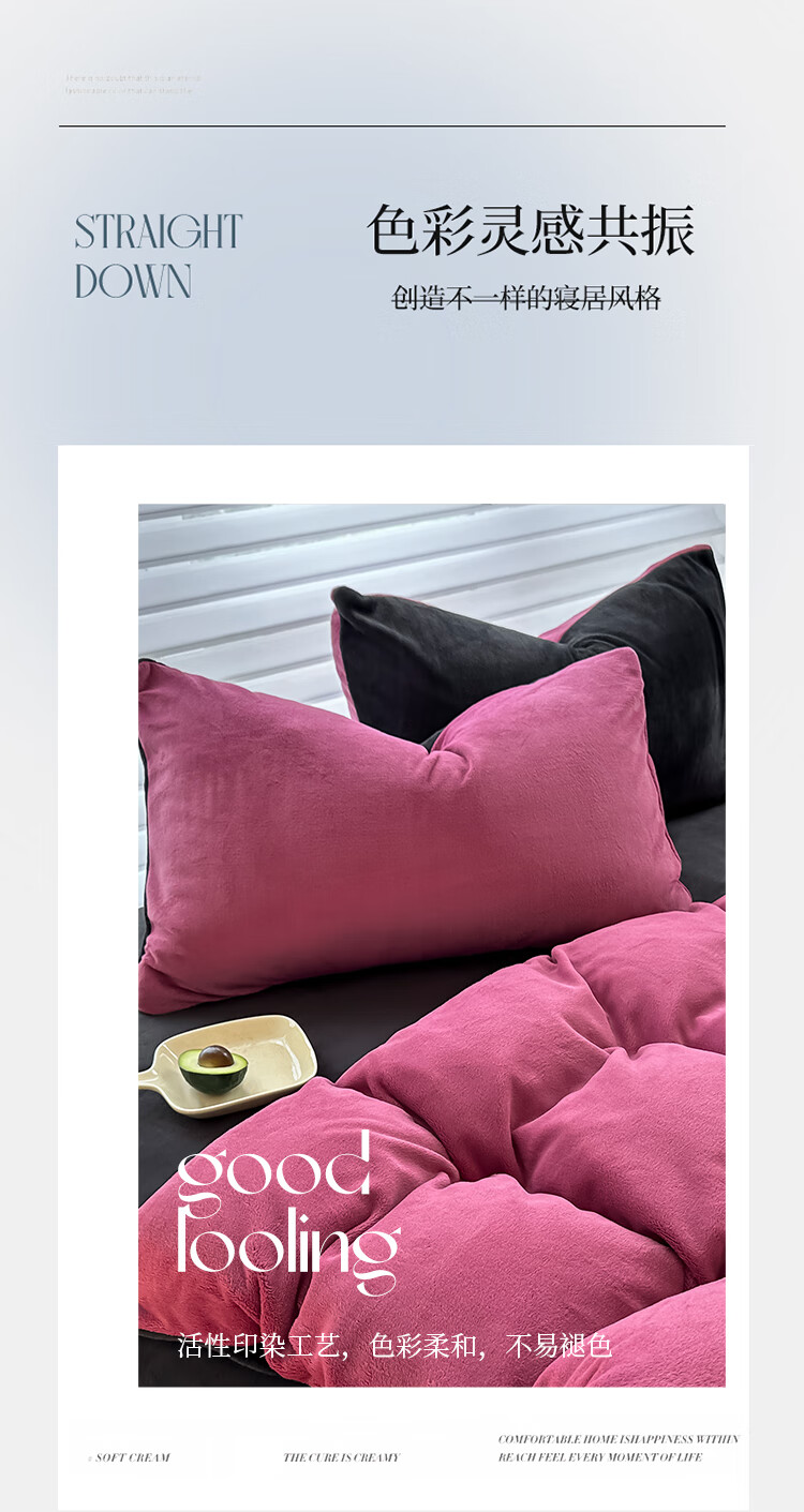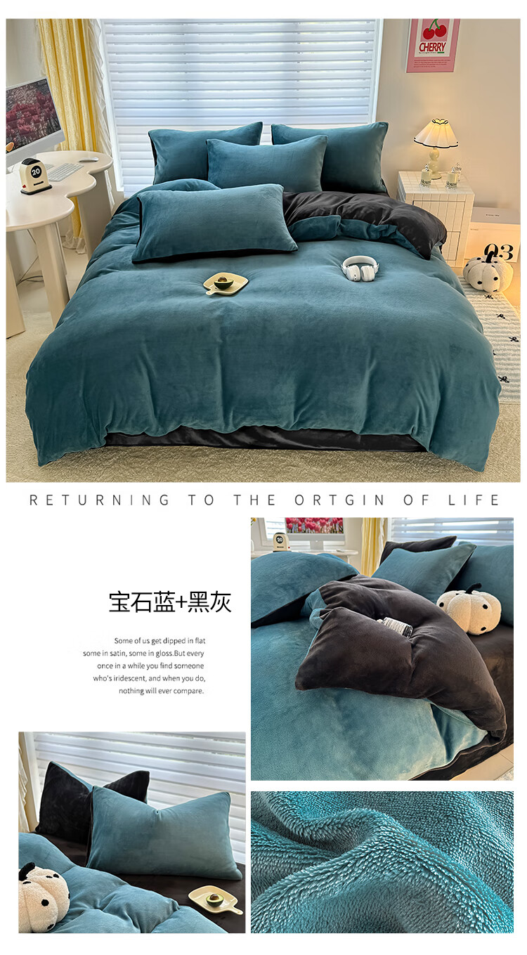 法式浪漫古风感GET 简约墨兰迪色系;在优雅的配色中打造出温暖氛围睡眠空间;软糯好PUA牛奶绒 肌感舒适的暖给你柔软的体验